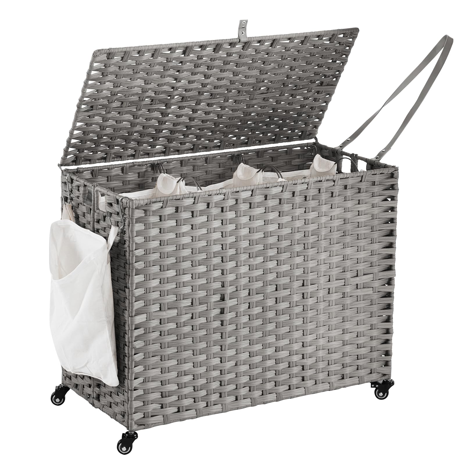 Cesta para ropa sucia con ruedas, cesta de lavandería enrollable de 52.8 galones (200 L) con tapa, cesta de ropa de ratán de 3 sec