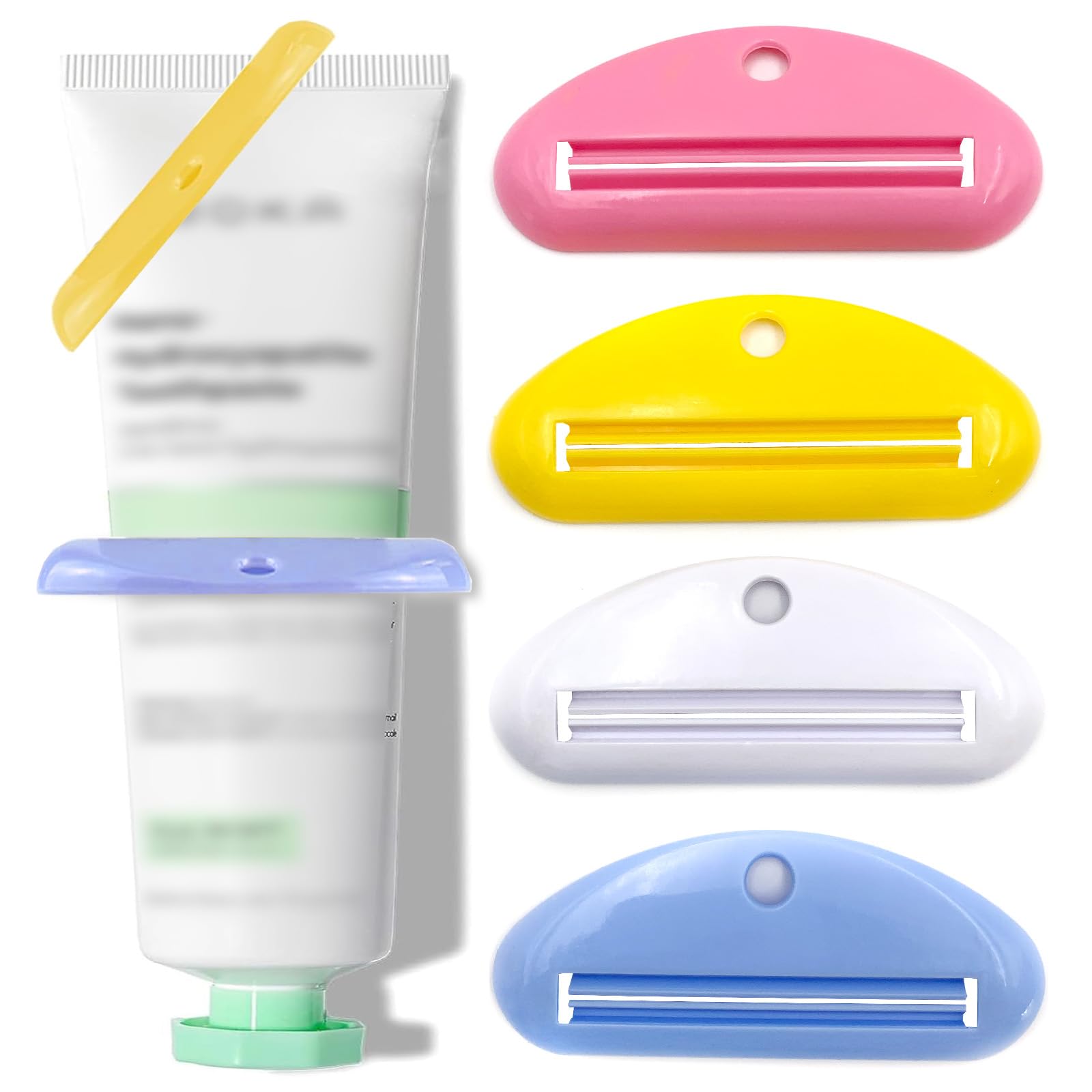 4 exprimidores de pasta de dientes, exprimidor de tubo de pasta de dientes de plástico, dispensador de pasta de dientes para colga