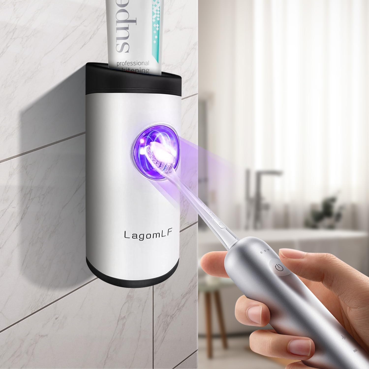 iHave Portacepillos de dientes para baños, desinfectante y soporte para cepillos de dientes UV, accesorios de baño inteligentes pa