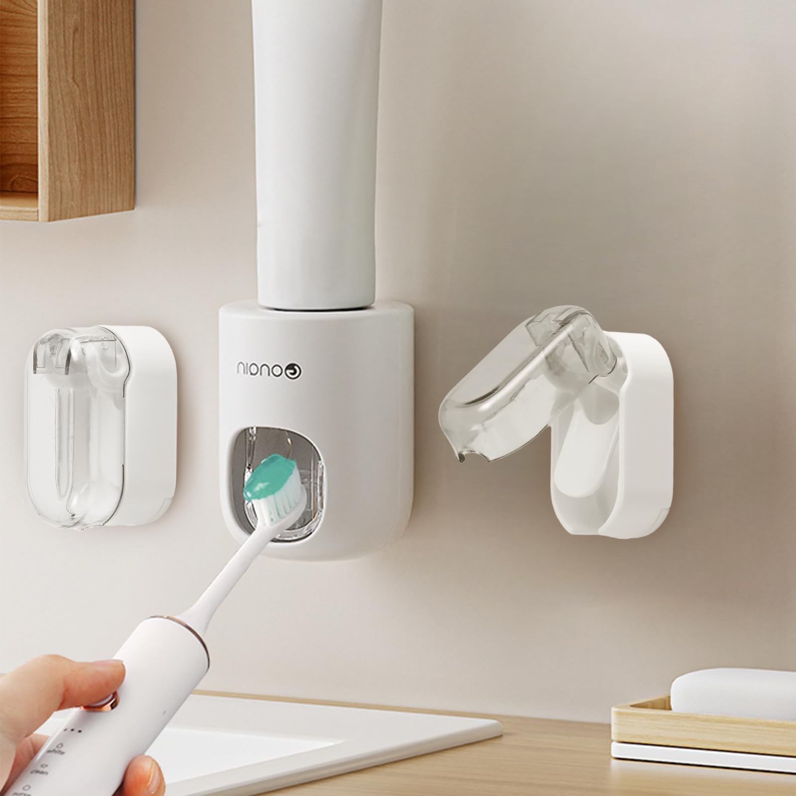 MOPMS Dispensador de pasta de dientes montado en la pared para baño, exprimidor automático de pasta de dientes para niños y adulto