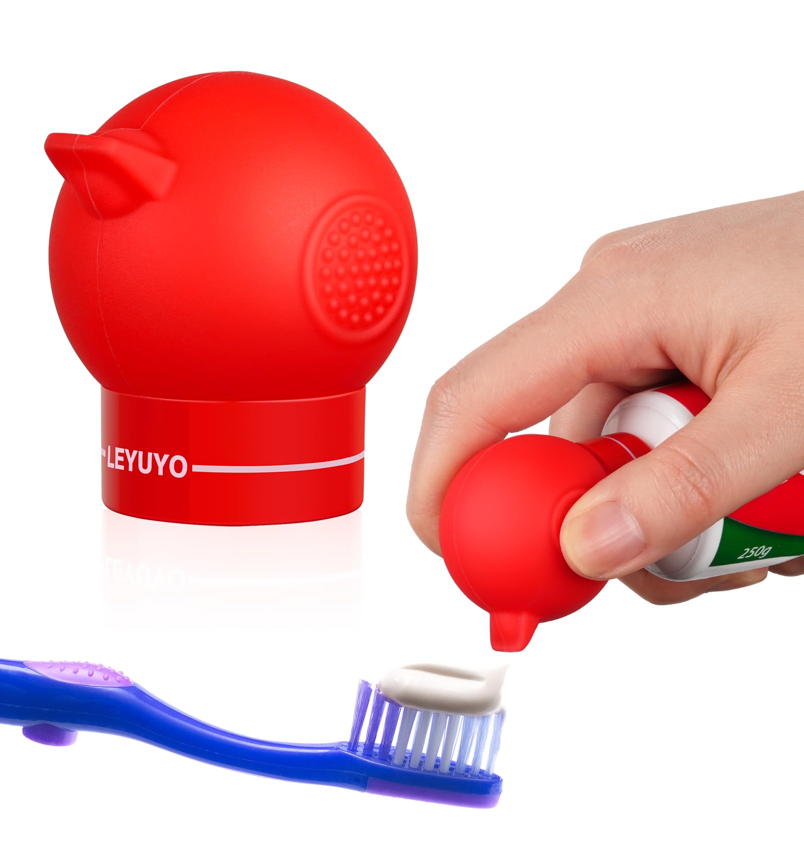 Chrome Cherry SqueezMe – Tapones de pasta de dientes con cierre automático, tapa de silicona para niños y adultos, dispensador de
