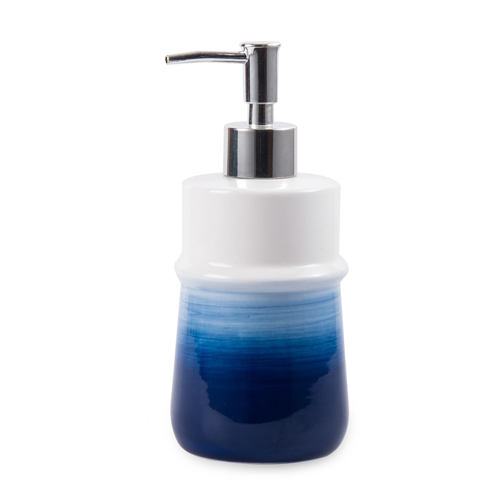 Dispensador de jabón de cerámica azul marino para cocina, dispensador de mano recargable con bomba de acero inoxidable a prueba de