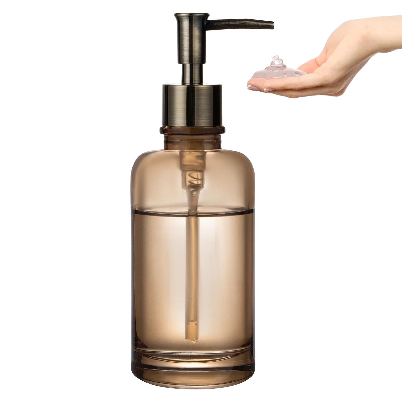 Dispensador de jabón de vidrio transparente con bomba de acero inoxidable a prueba de óxido, dispensador de jabón líquido de manos