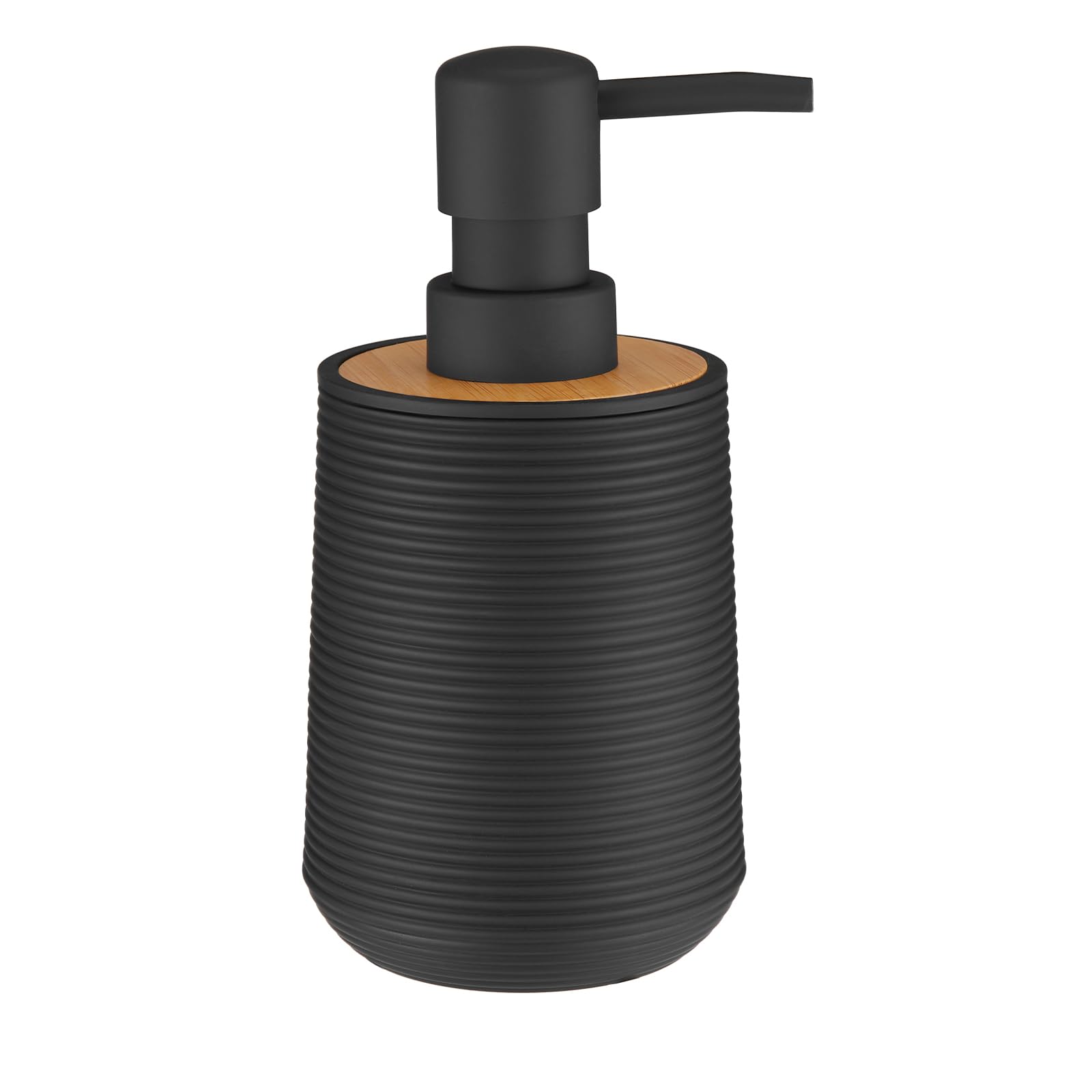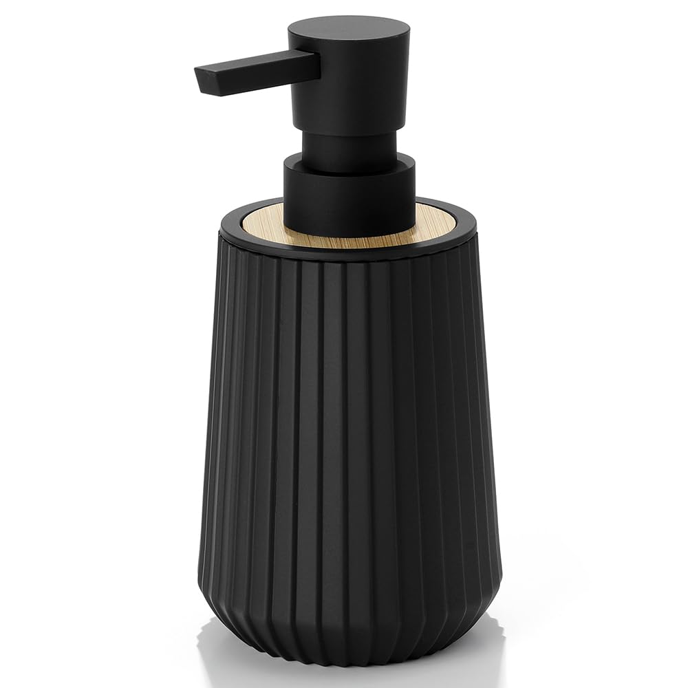 Dispensador de jabón de manos para baño y cocina, estilo moderno a rayas con decoración de bambú, color negro