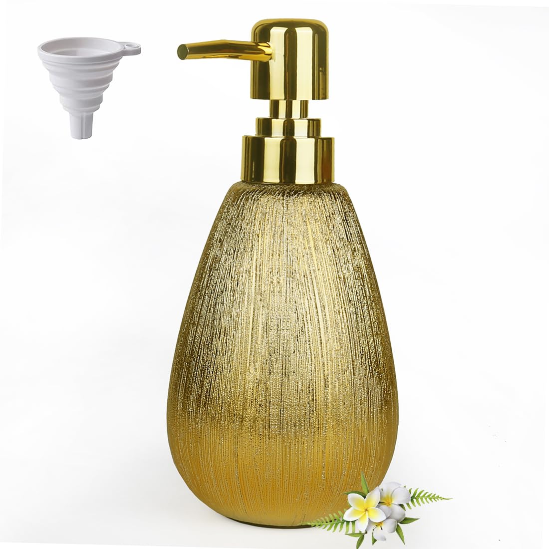 Dispensador de jabón de cerámica dorada cepillada, bomba dispensadora de jabón de manos de 13.05 onzas, diciembre de lujo para bañ
