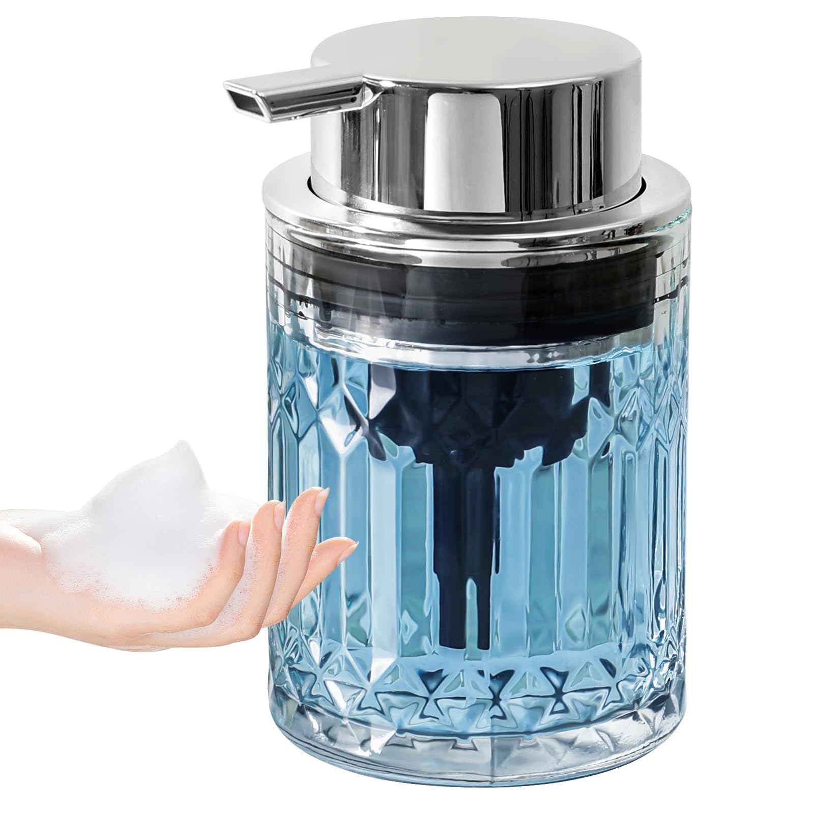 Dispensador de jabón espumoso, dispensador de jabón de manos de espuma de vidrio transparente para baño, botella espumosa recargab