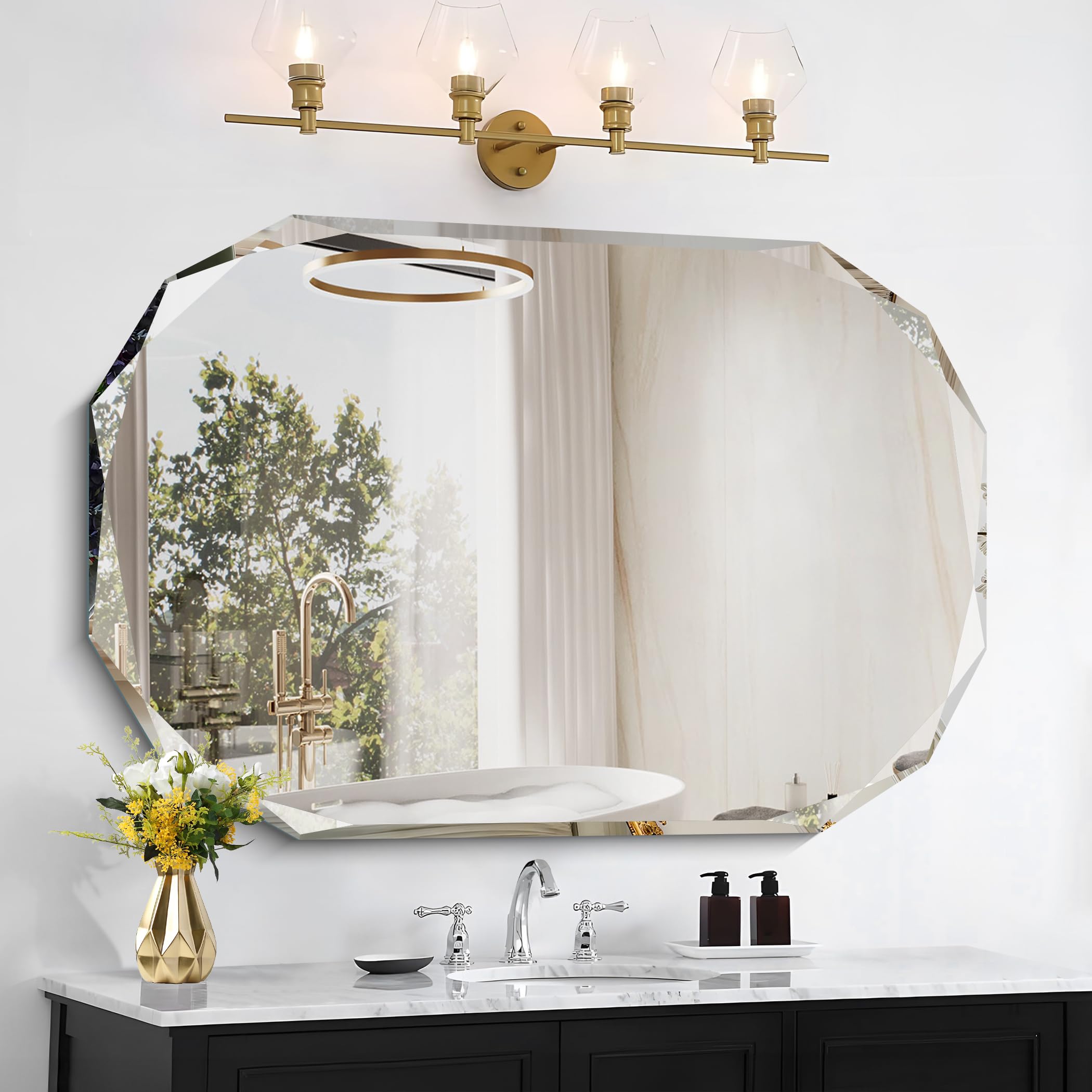 Espejo de baño sin marco para pared, espejo de tocador de baño biselado de 48 x 36 pulgadas, espejos de baño rectangulares moderno