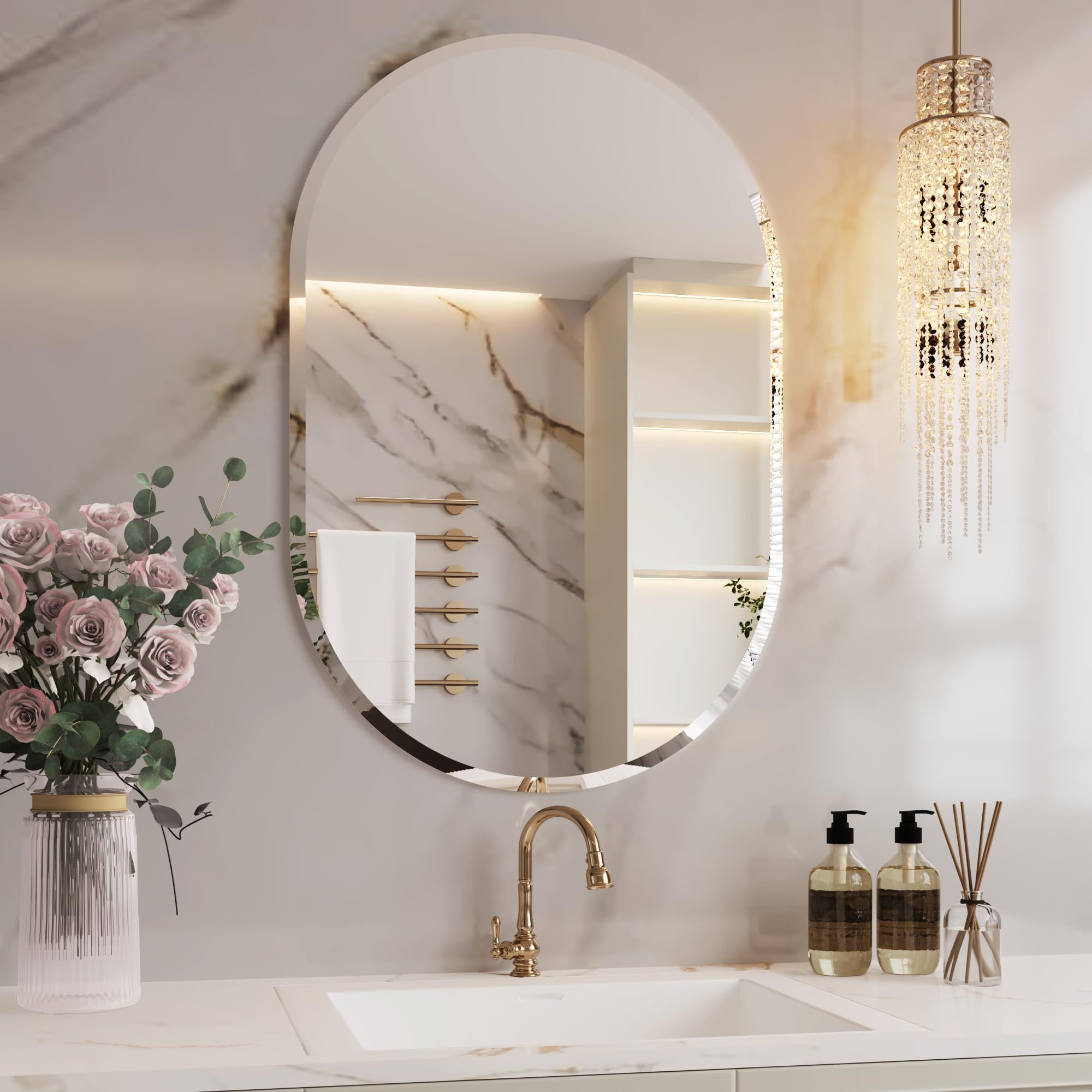 USHOWER Espejo de baño para sobre fregadero, espejo ovalado sin marco de 20 x 28 pulgadas, biselado y pulido, espejo de pared deco