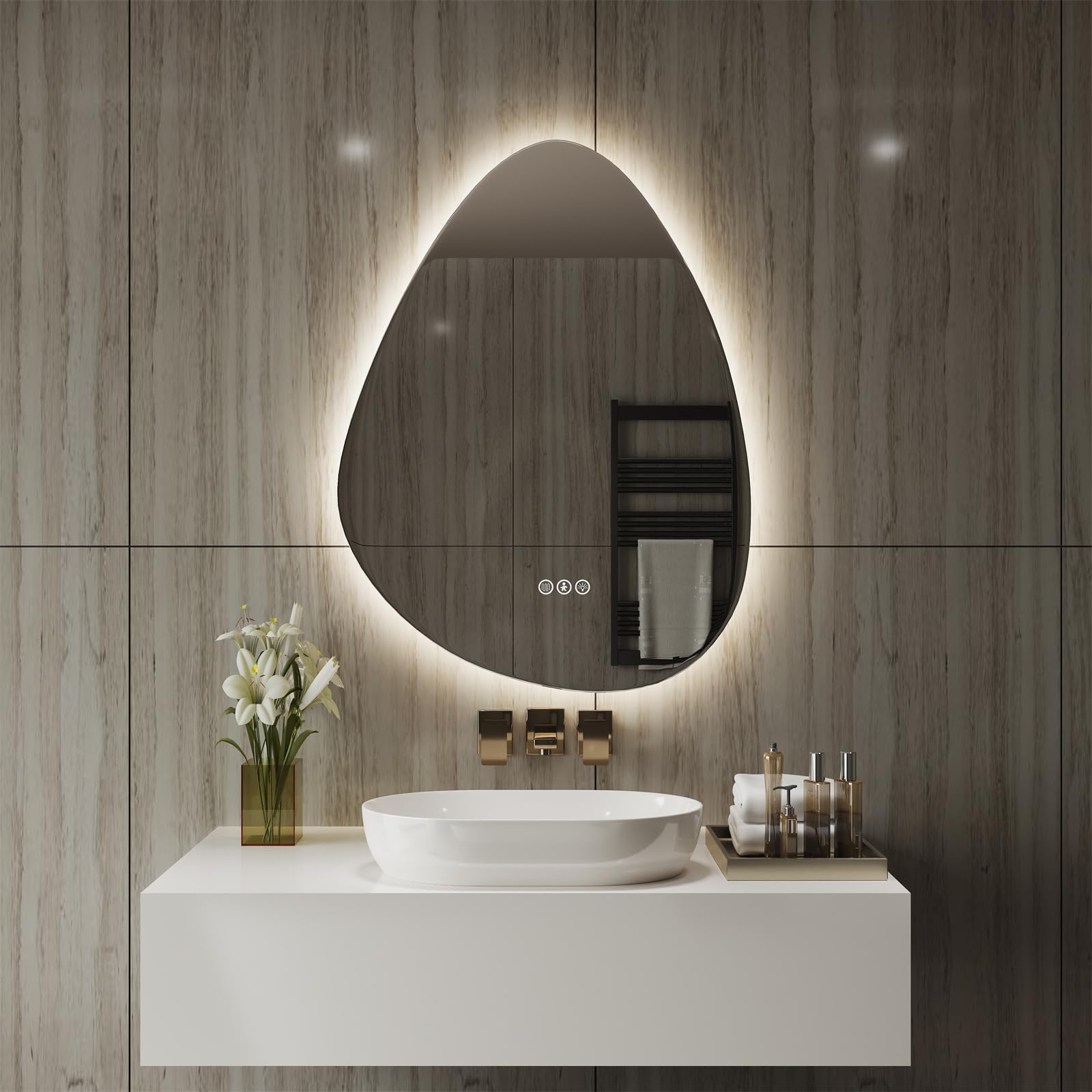 Amorho Espejo LED para baño de 24 x 36 pulgadas con retroiluminación y luz frontal, espejo sin niebla para montaje en pared, regul