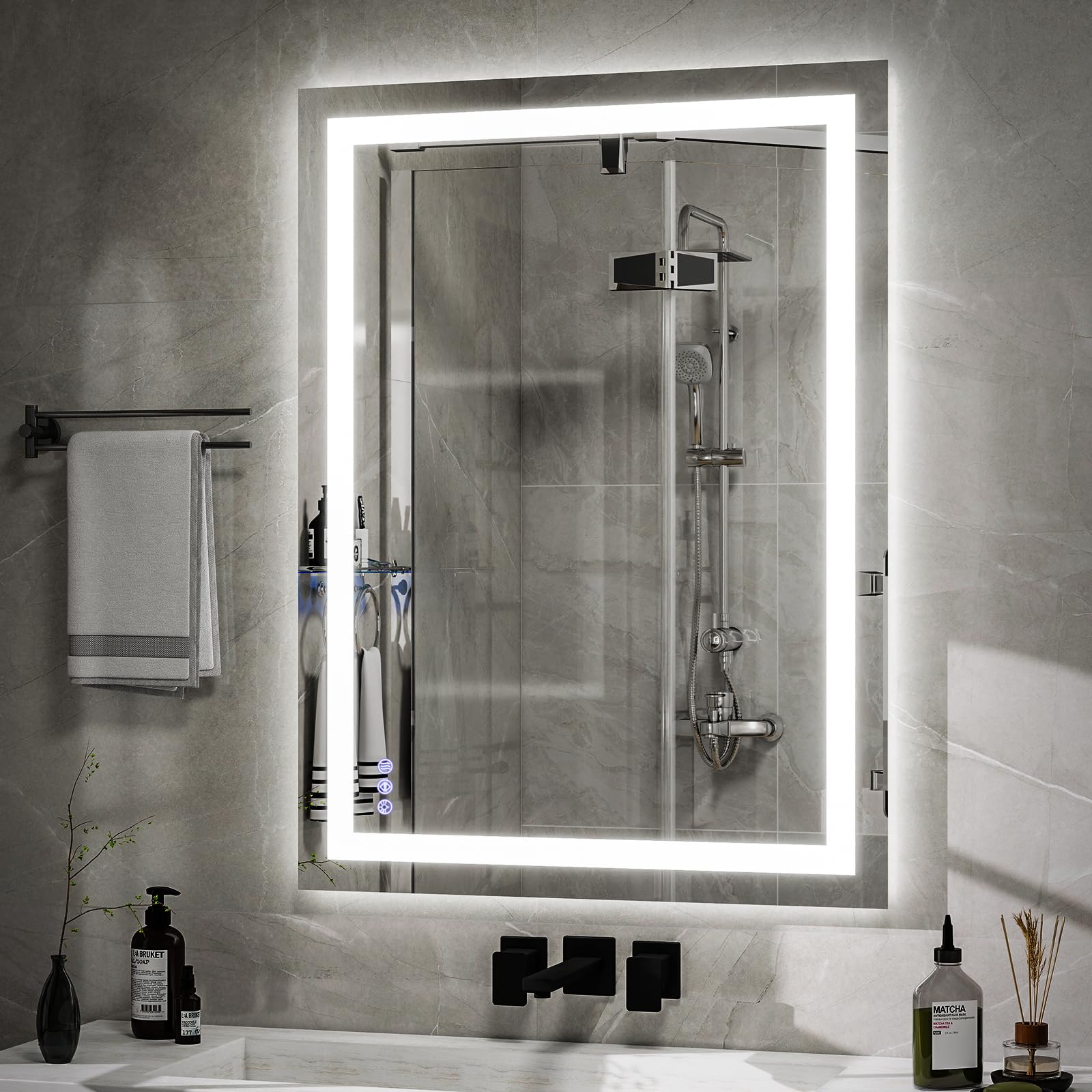 Espejo de baño LED de 24 x 32 con luces, espejo de tocador de baño con retroiluminación y luz delantera, espejo LED regulable cont