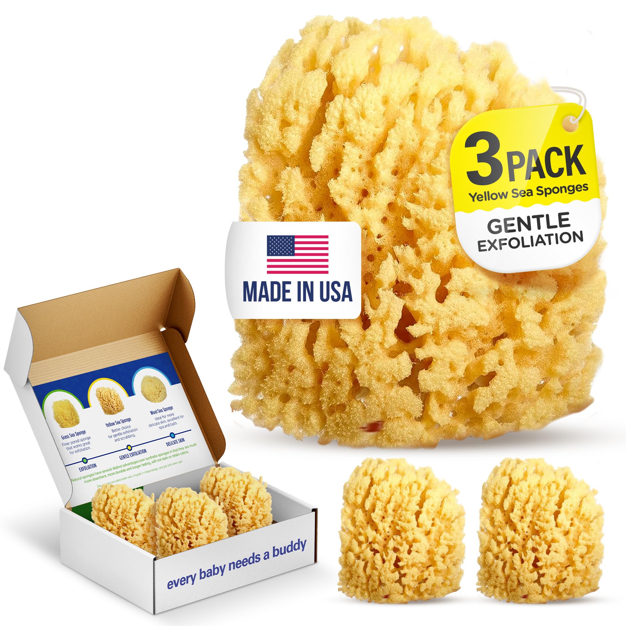 Baby Buddy – Esponja de baño para bebé, esponja de mar natural absorbente, suave en la piel tierna, biodegradable, hipoalergénica,