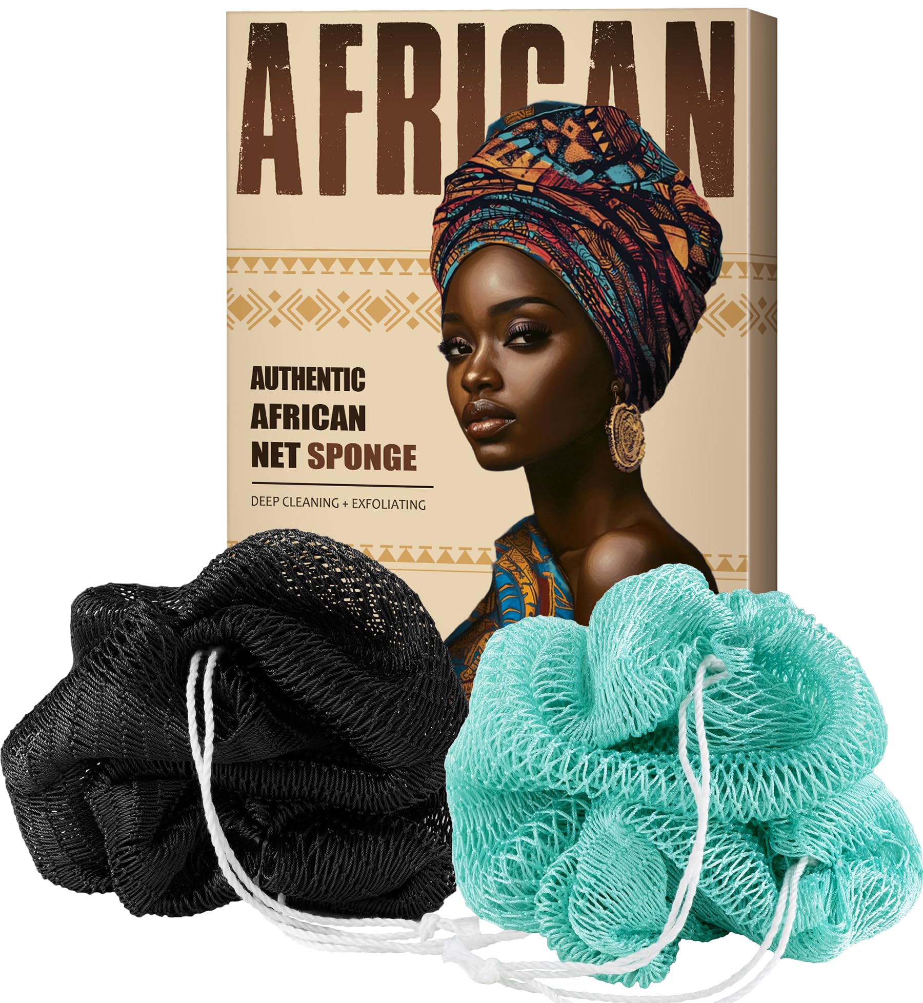 African Net Sponge Authentic – Esponja de red exfoliante afro con nudos – 2 esponjas de baño africanas para exfoliante corporal –