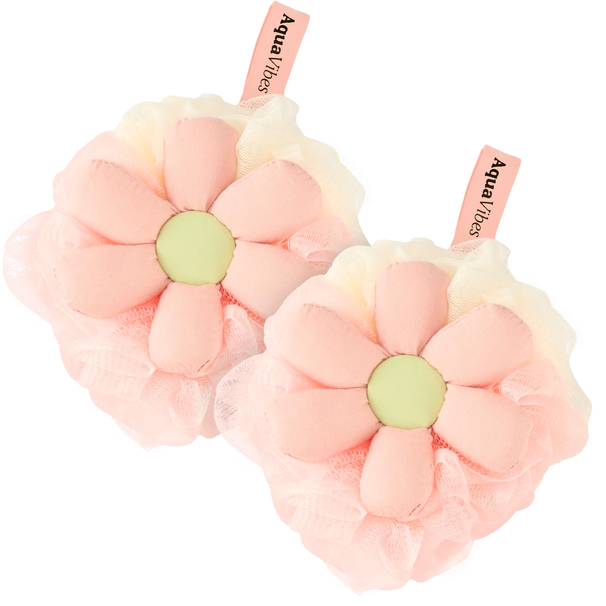 Esponja de lufa de baño bonita, puf de malla en forma de flor, paquete duo, esponja exfoliante de ducha para mujeres, esponja de b