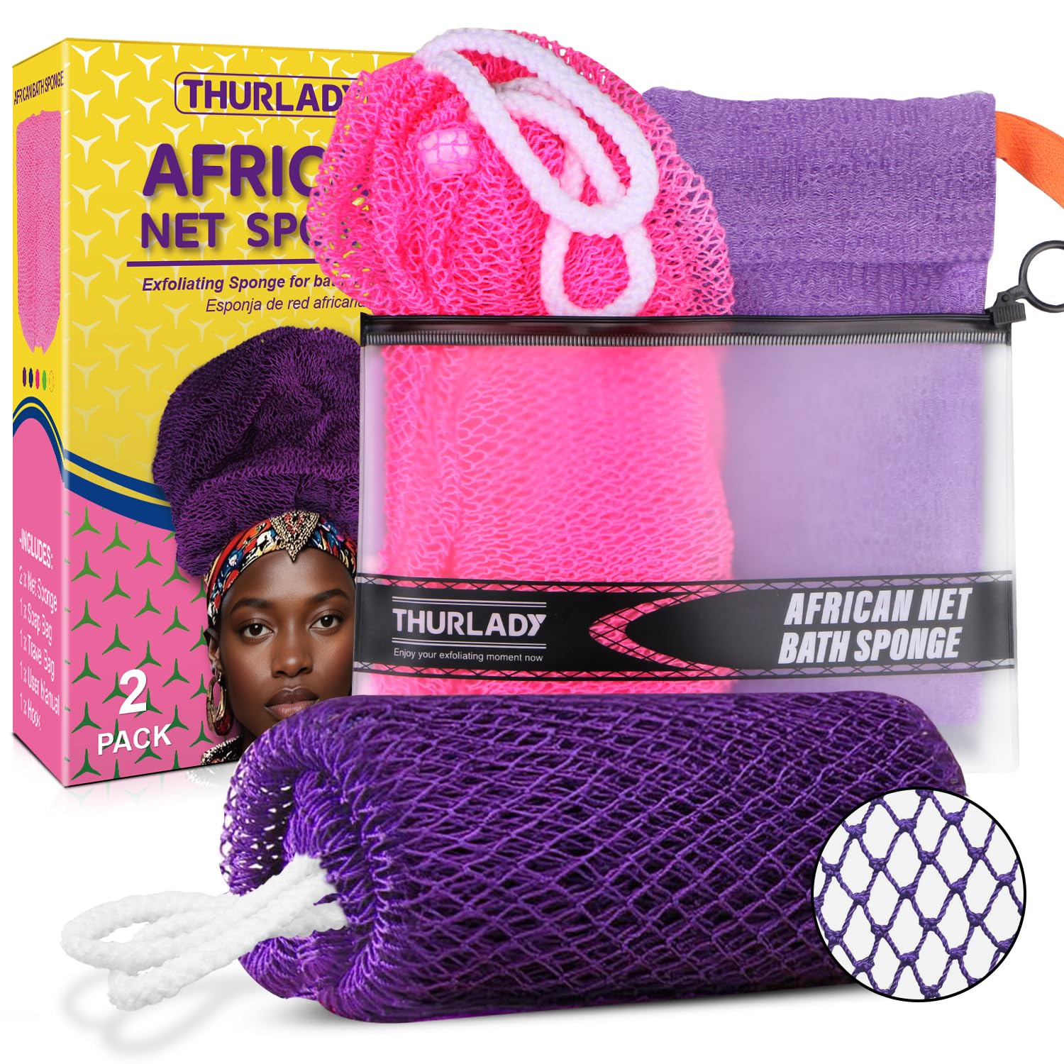 Esponja de red africana auténtica con nudos, esponja de red exfoliante Afroscrub para exfoliante corporal, exfoliante de baño afri