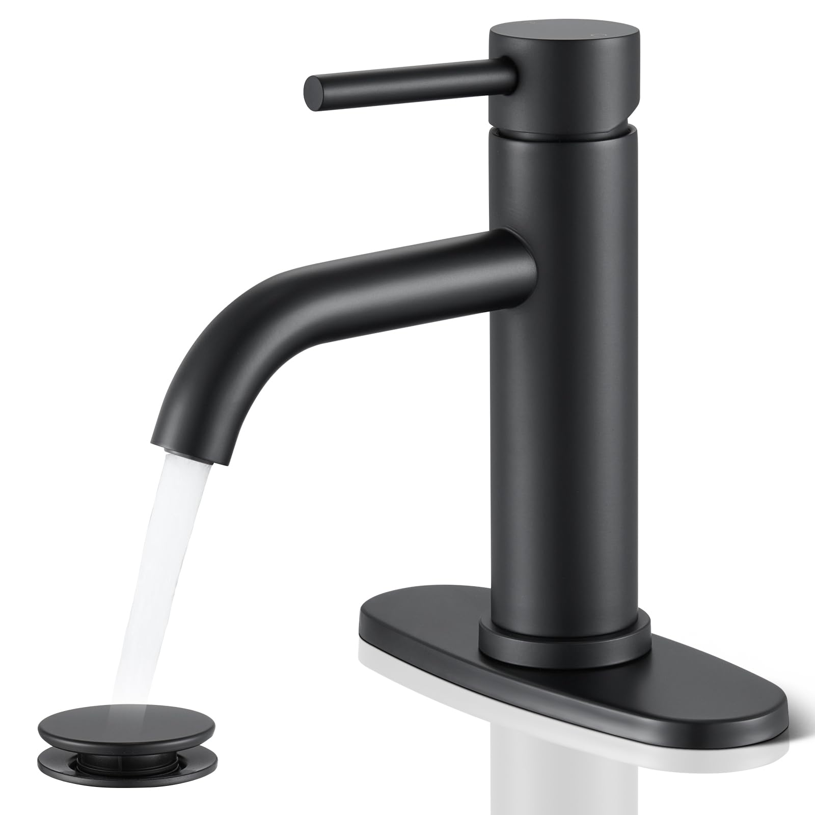 FORIOUS Grifo de lavabo de baño negro mate, cascada de 4 pulgadas, con drenaje desplegable de metal y manguera cUPC para lavabo, t
