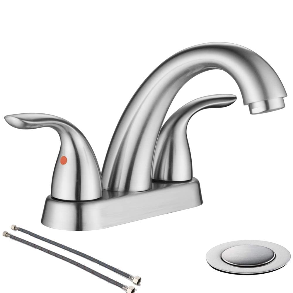 Phiestina Centerset BF008-5-BN – Grifo de lavabo de baño de acero inoxidable de 4 pulgadas de níquel cepillado de 2 o 3 agujeros,