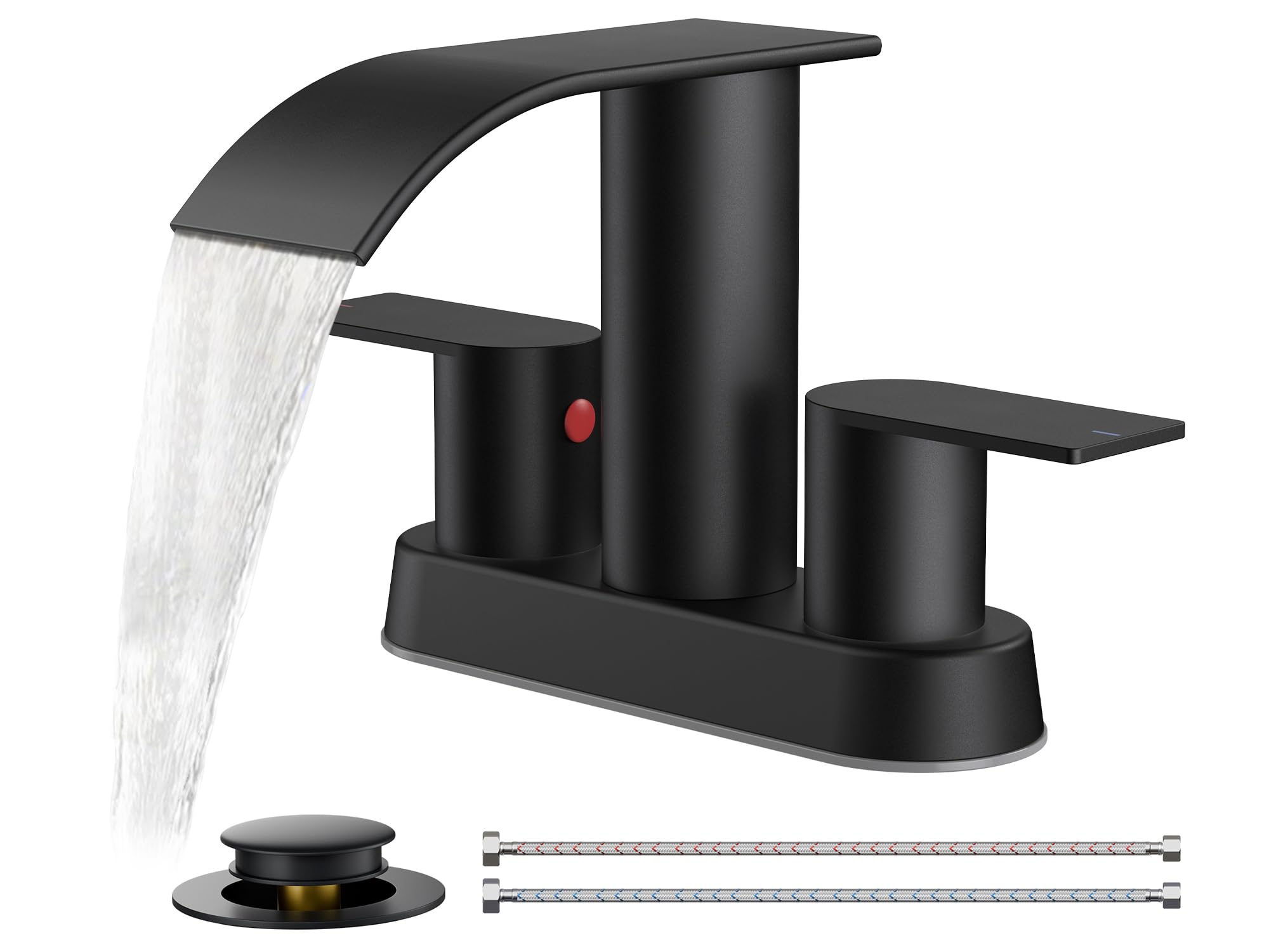 Cobbe Grifo cuadrado de lavabo de agua en cascada de 4 pulgadas, color negro mate