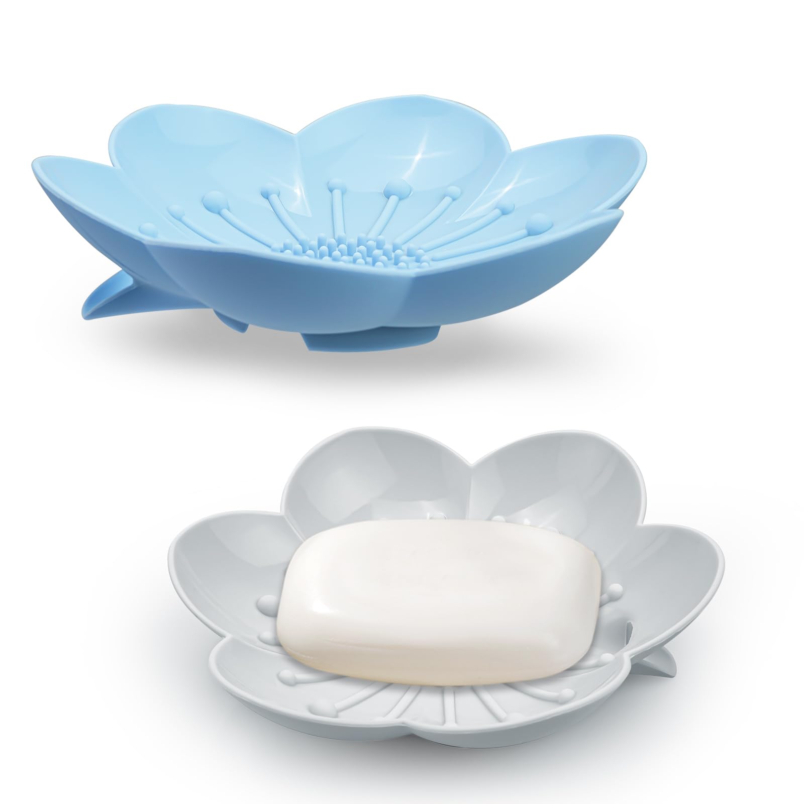 Soap Dishes 2 Pack Self Draining XL Flexible Bar Holder for Shower, Silicone Flower Soap Saver Tray for Counter Bathtub Sink Bathr