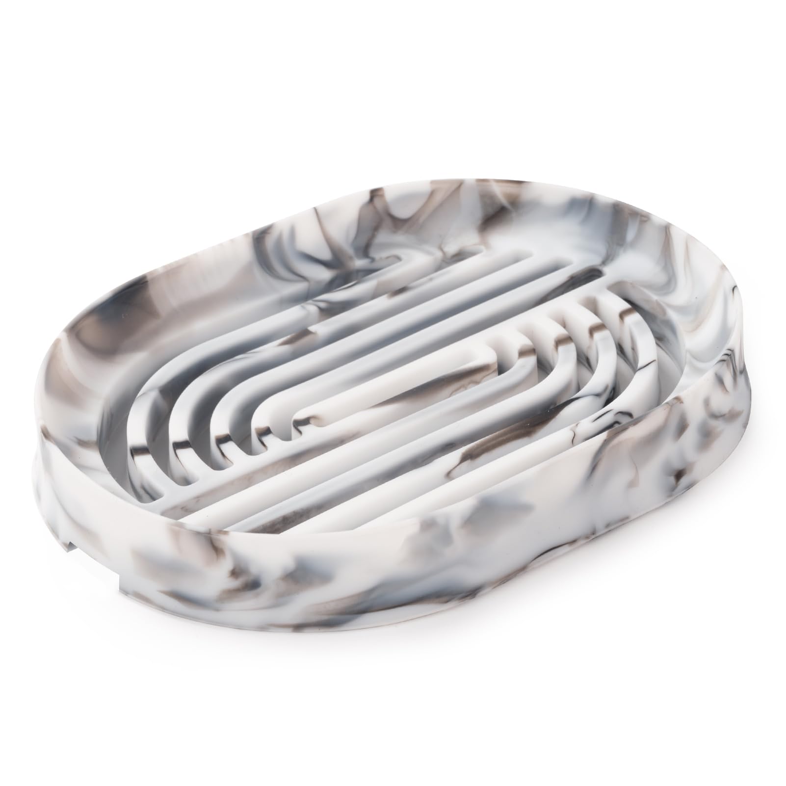 Jabonera de cerámica, textura de mármol, cresta elevada, superficie lisa, fácil de limpiar, base antideslizante, se adapta a barra