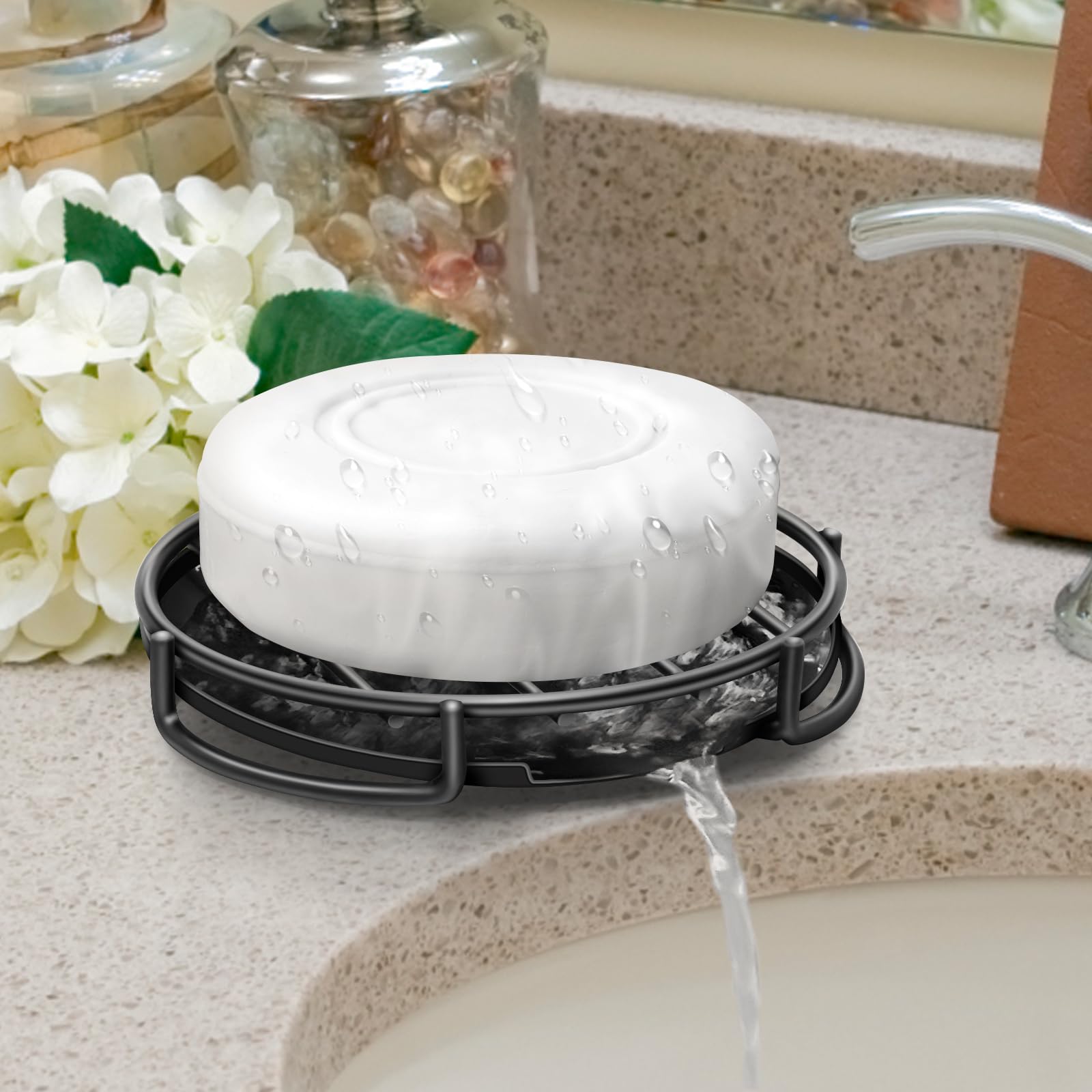 DAY1 – Bandeja de jabón de mármol – Soporte para jabón de lavabo de baño, bandeja de tocador, organizador de cepillos, plato decor