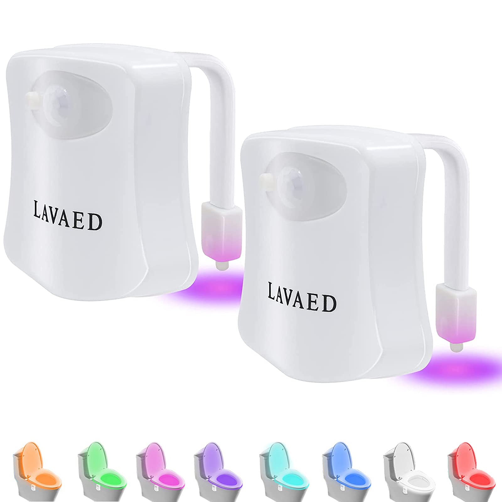 LAVAED Luz de asiento de inodoro con sensor de movimiento, 8 colores cambiantes de luz de baño para el hogar (paquete de 1)