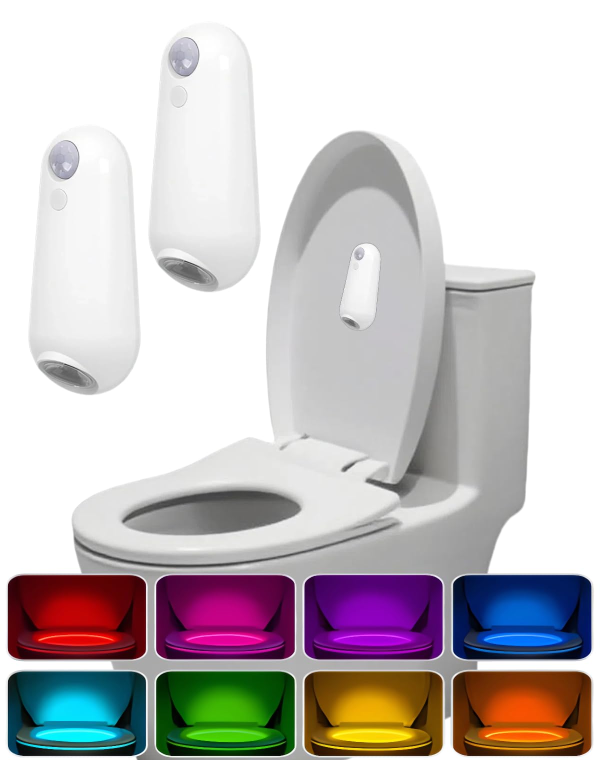 iBetterLife Paquete de 2 luces LED con sensor de movimiento para inodoro, 8 colores cambiantes, luz nocturna para baño, dispositiv