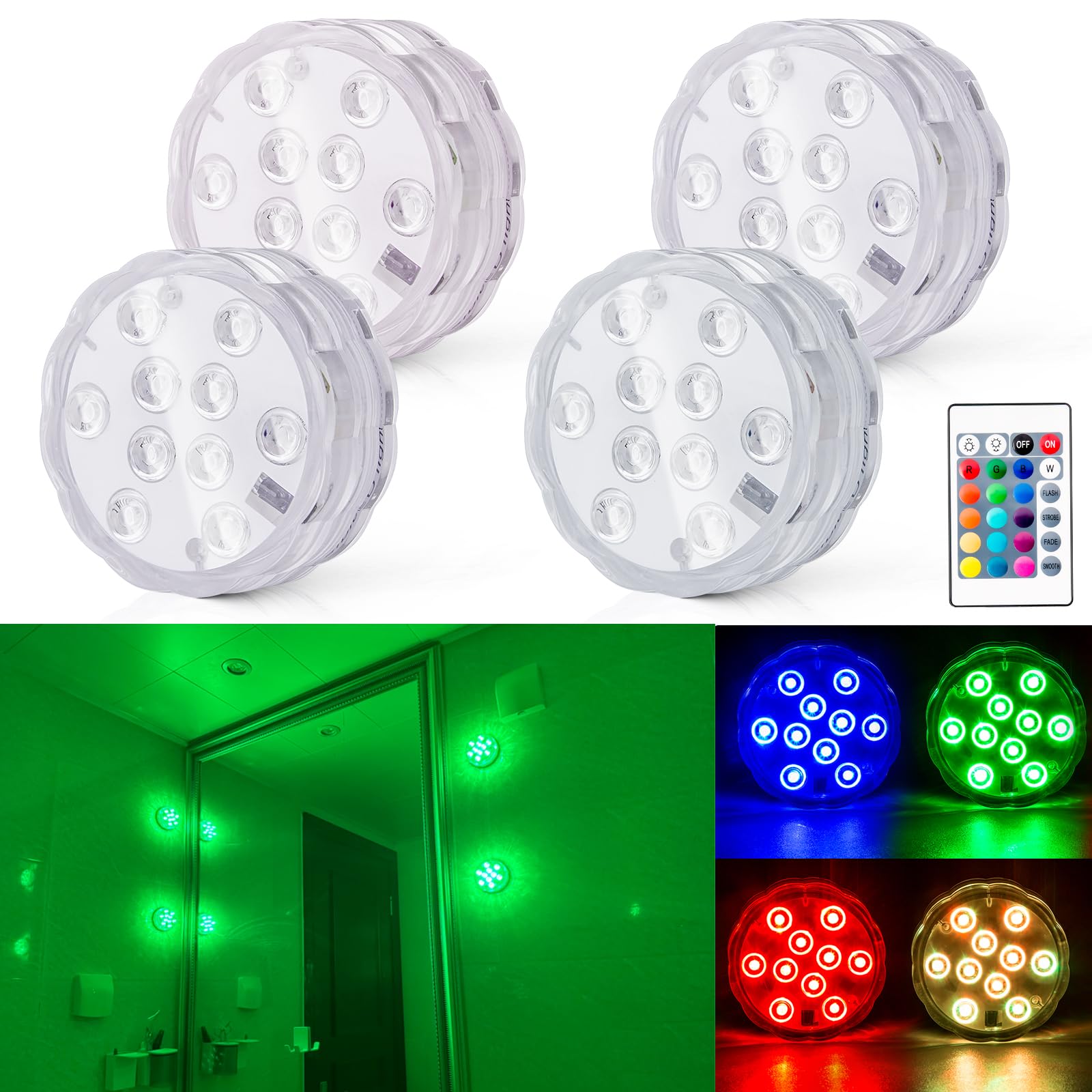 Luces de tocador de baño inalámbricas, funciona con pilas, luz LED impermeable para ducha, spa, baño, sobre espejo, pared, techo,