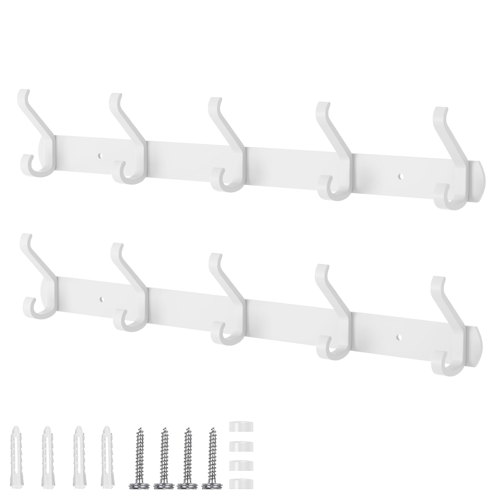 Perchero de pared blanco – Diseño en forma de arco de 15 pulgadas con 6 ganchos para colgar abrigos, bolsas y toallas en la entrad