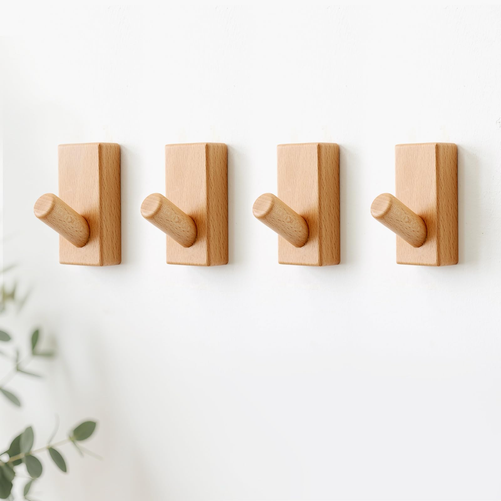 Paquete de 4 ganchos de pared de madera para colgar, ganchos de madera de haya montados en la pared, gancho para bata, sombrero, b