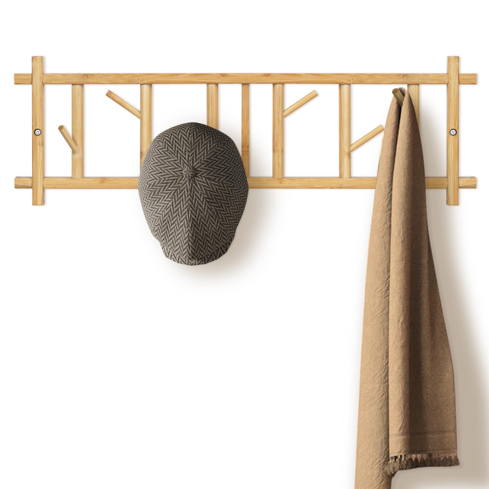 Perchero de bambú con 12 ganchos giratorios para entrada, baño, dormitorio, ganchos estilo granja para chaquetas, toallas, llaves,