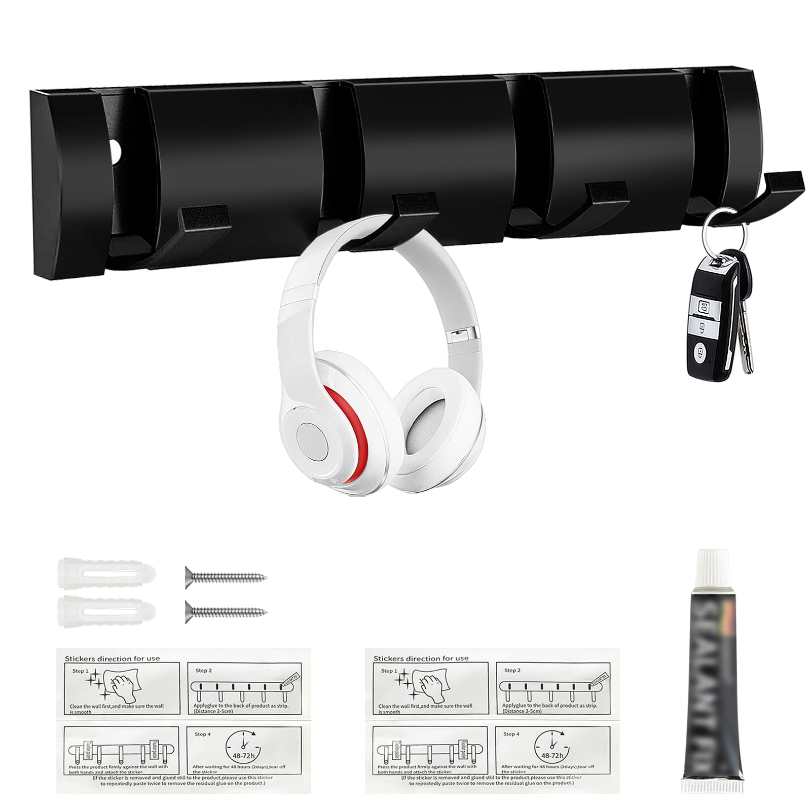 Perchero de pared con diseño de impresión UV, decoración de 5 ganchos de pared adhesivos y atornillados, perchas de metal resisten