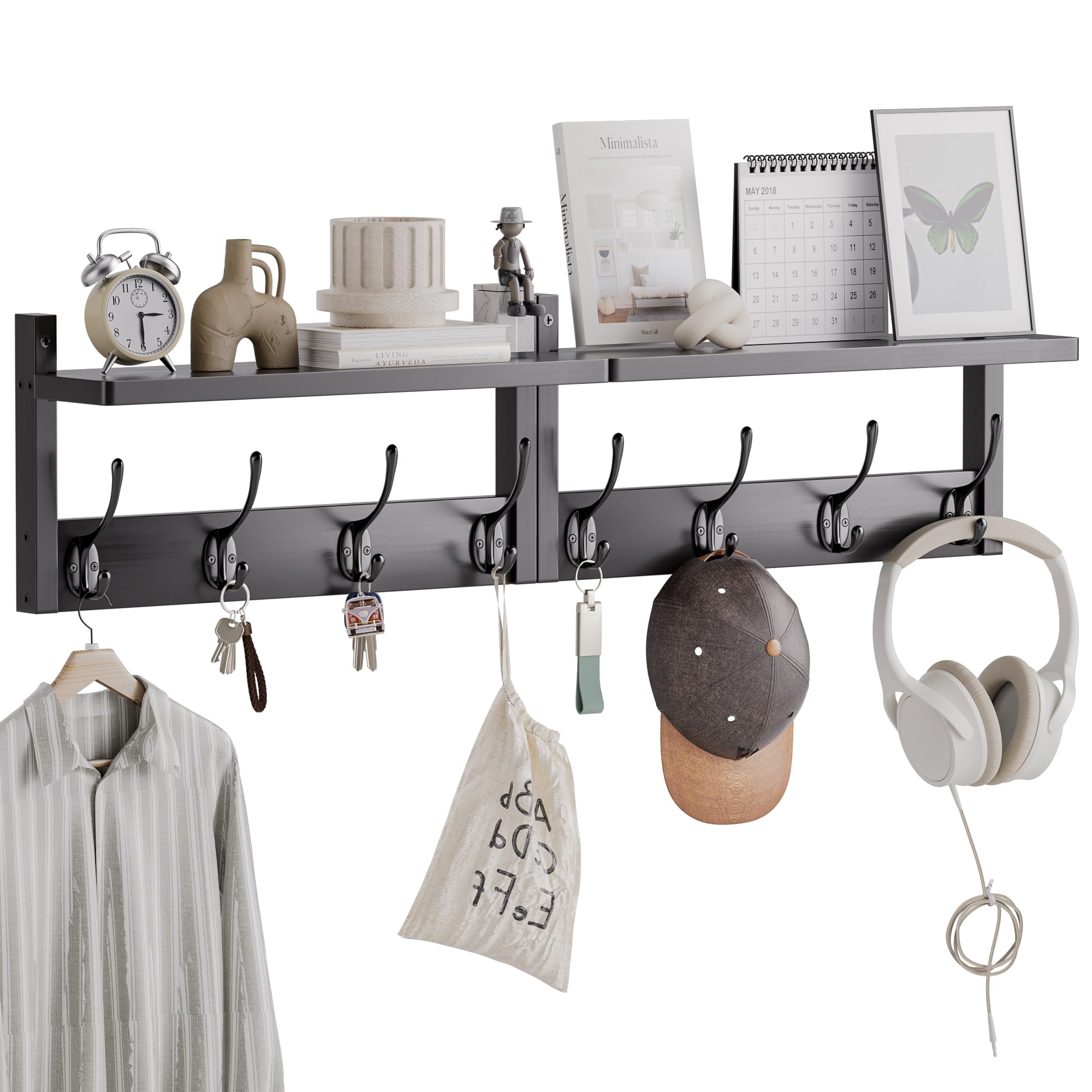 WEBI Estante de pared con ganchos debajo, perchero de 24 pulgadas de largo con estante, estante para llaves para pared, 5 ganchos