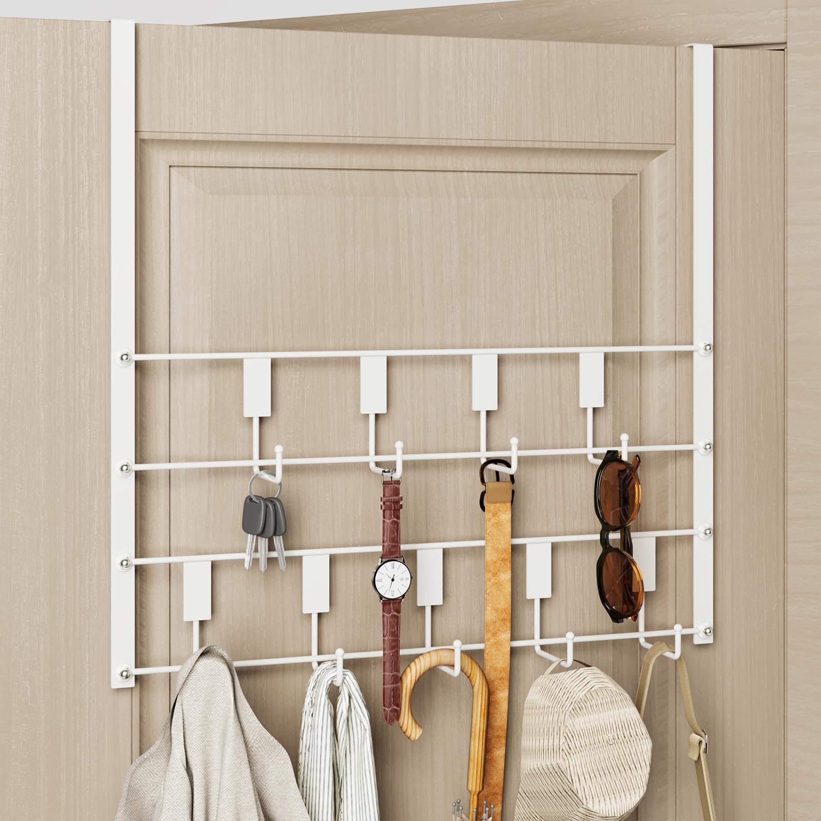 Percha de puerta con tres ganchos para colgar sobre la puerta, organizador de cinturones, 30 ganchos para abrigos, 2 niveles con c