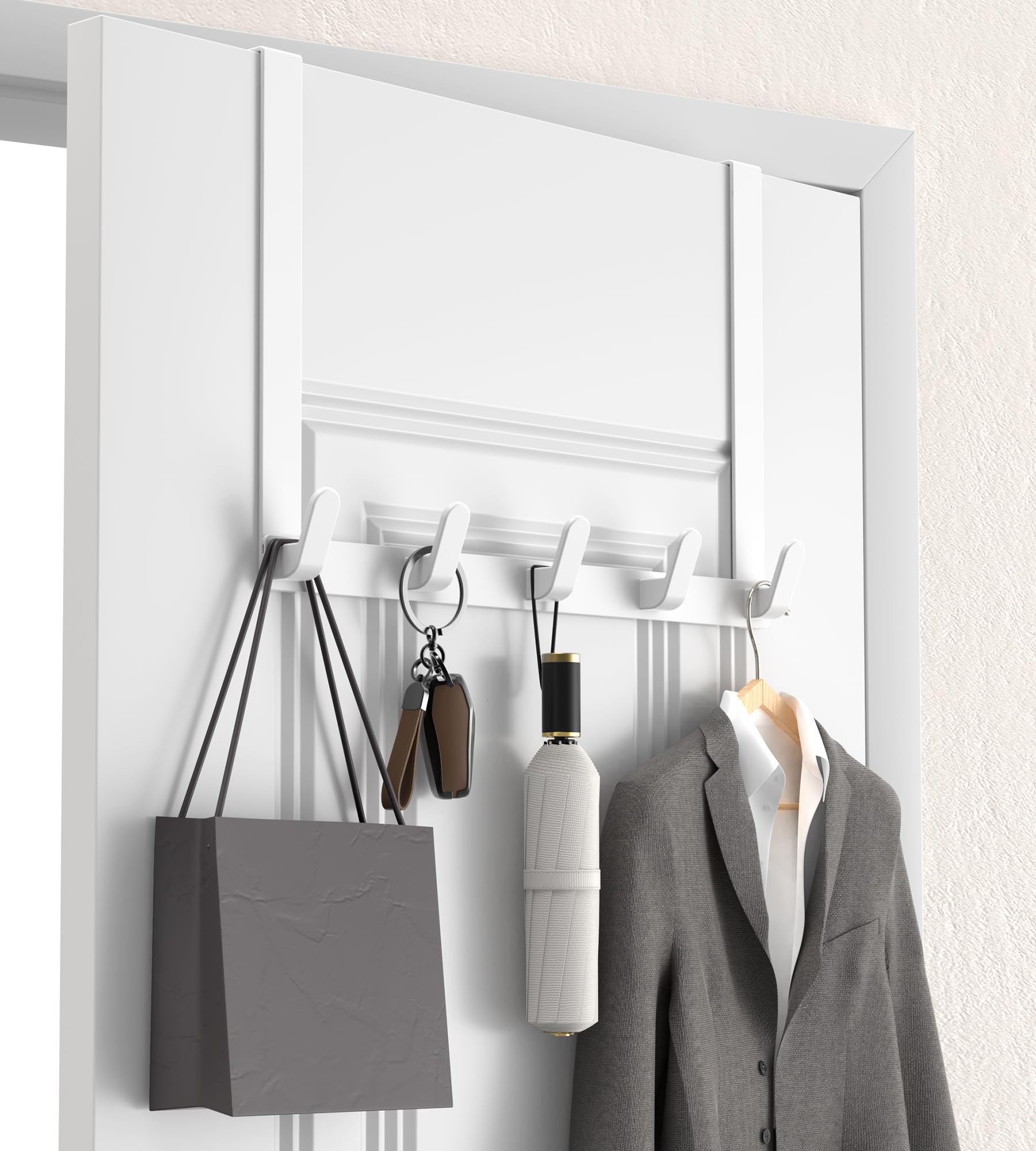 WEBI – Perchero para colgar en una puerta con 6 ganchos para colgar toallas, abrigos, para usar en la parte interna de la puerta d