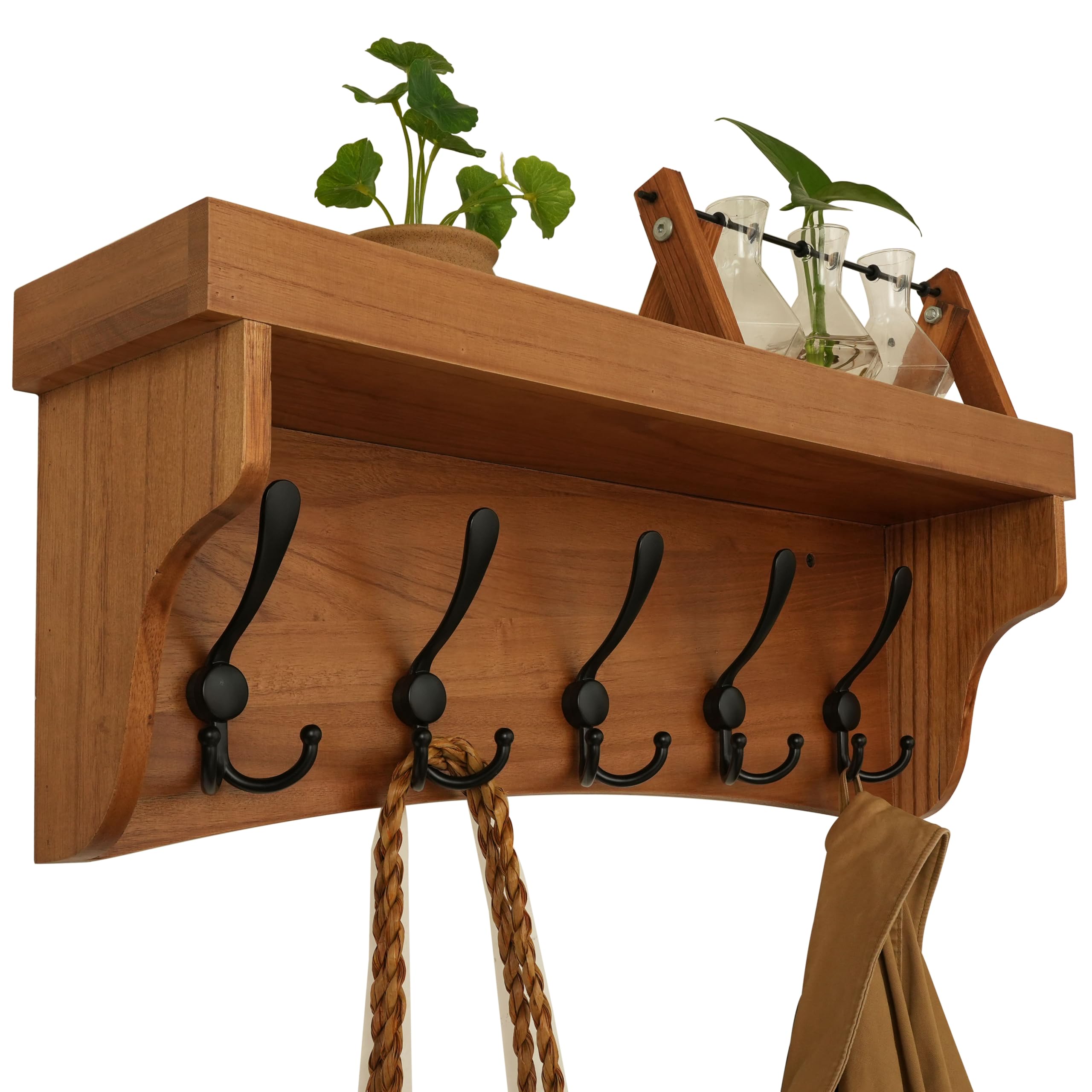 Homode Perchero con estante, colgador de madera de 29 pulgadas de largo, soporte de pared con estante para llaves y soporte para c