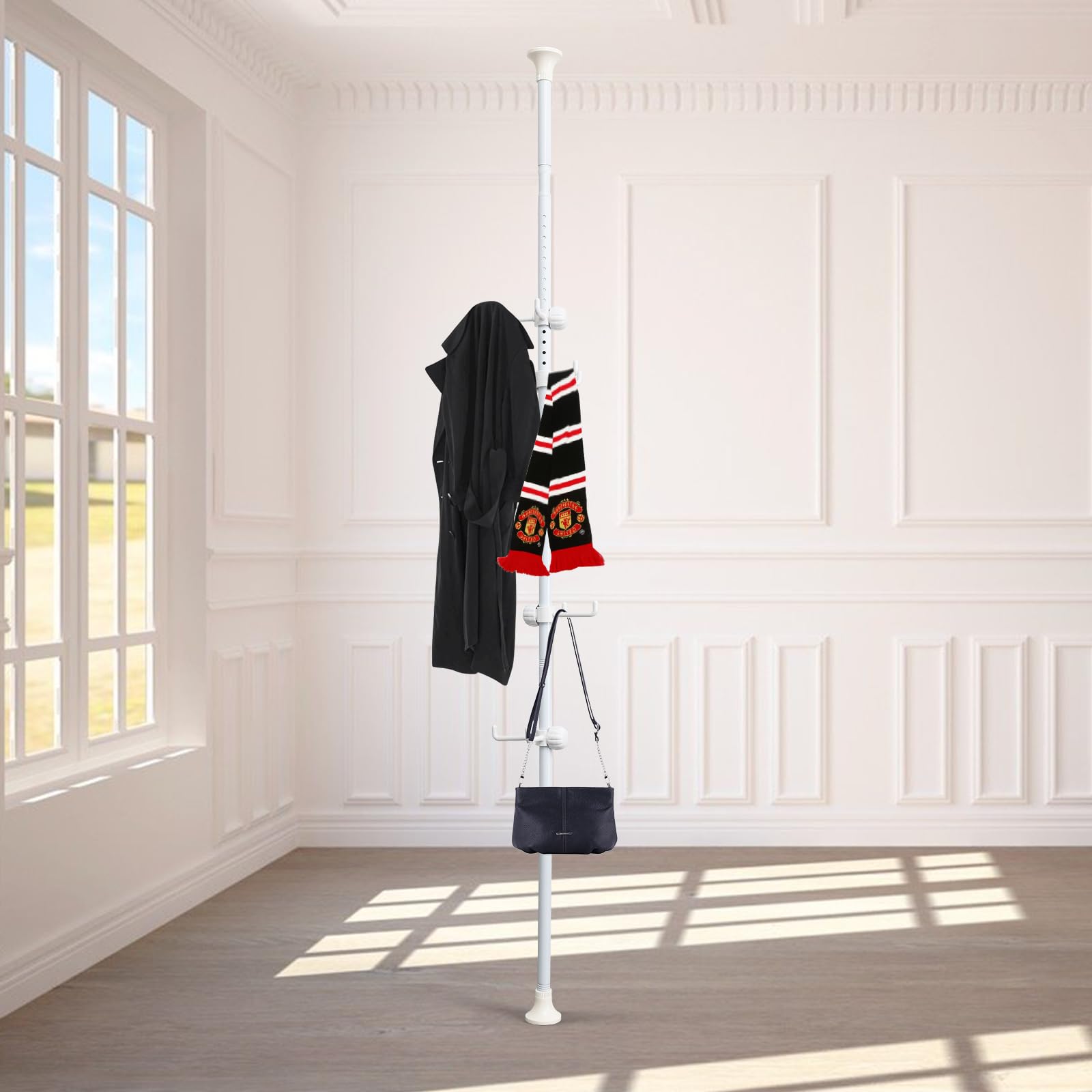 Perchero independiente, ajustable de 56 a 125 pulgadas, barra de tensión para árbol de 12 ganchos para colgar abrigos, sombreros,
