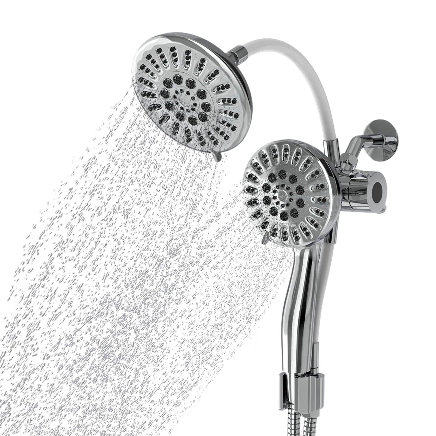AQUAZEN® Dual Shower Head Combo | Adjustable Rainfall + Handheld Shower | 6 Spray Modes Each | Flexible Mount & Swivel Heads | 5ft