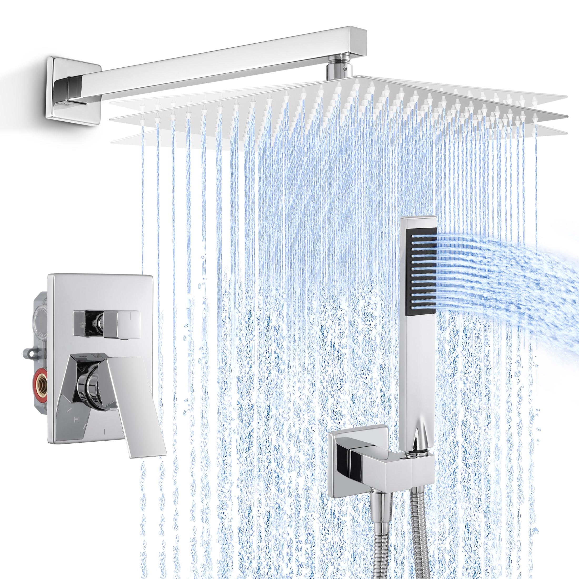 Gabrylly Sistema de ducha, cabezal de ducha de lluvia de alta presión de 12 pulgadas con ducha de mano, juego completo de grifo de