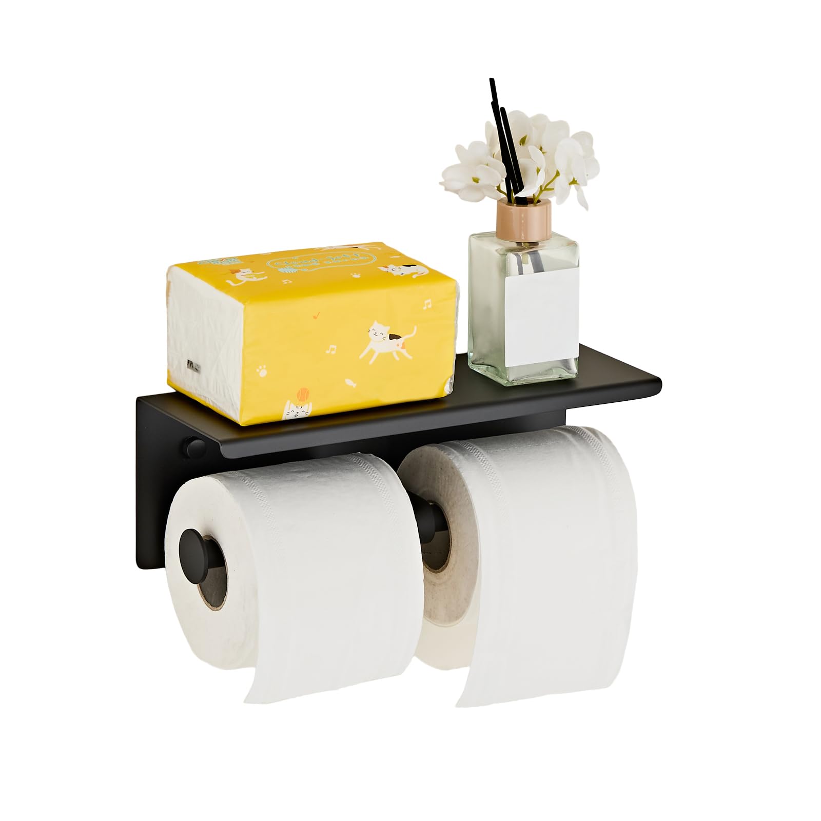 NEWRAIN – Soporte de papel higiénico doble para baño con estante, soporte de rollo de papel higiénico de acero inoxidable montado