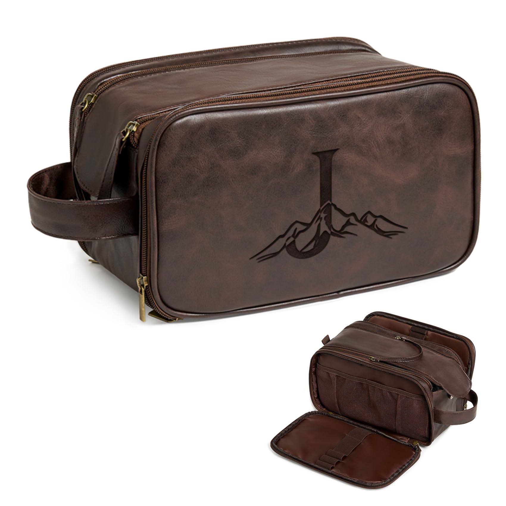 Janhavi Neceser para hombre impermeable, regalos de padrinos de boda, iniciales grabadas de cuero personalizado y montaña, bolsa d