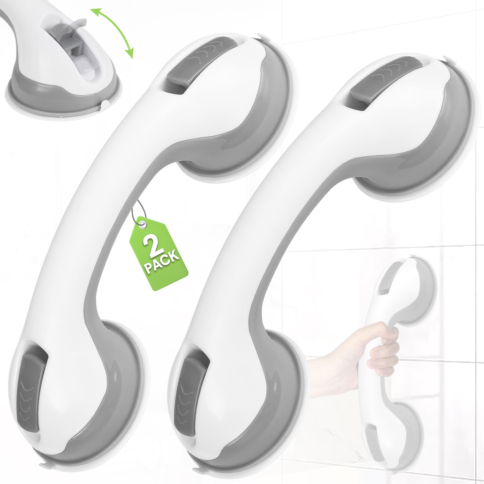 Auroras Barras de agarre de 12 pulgadas para tinas y duchas con ventosa, barras de agarre extraíbles para personas mayores, mango