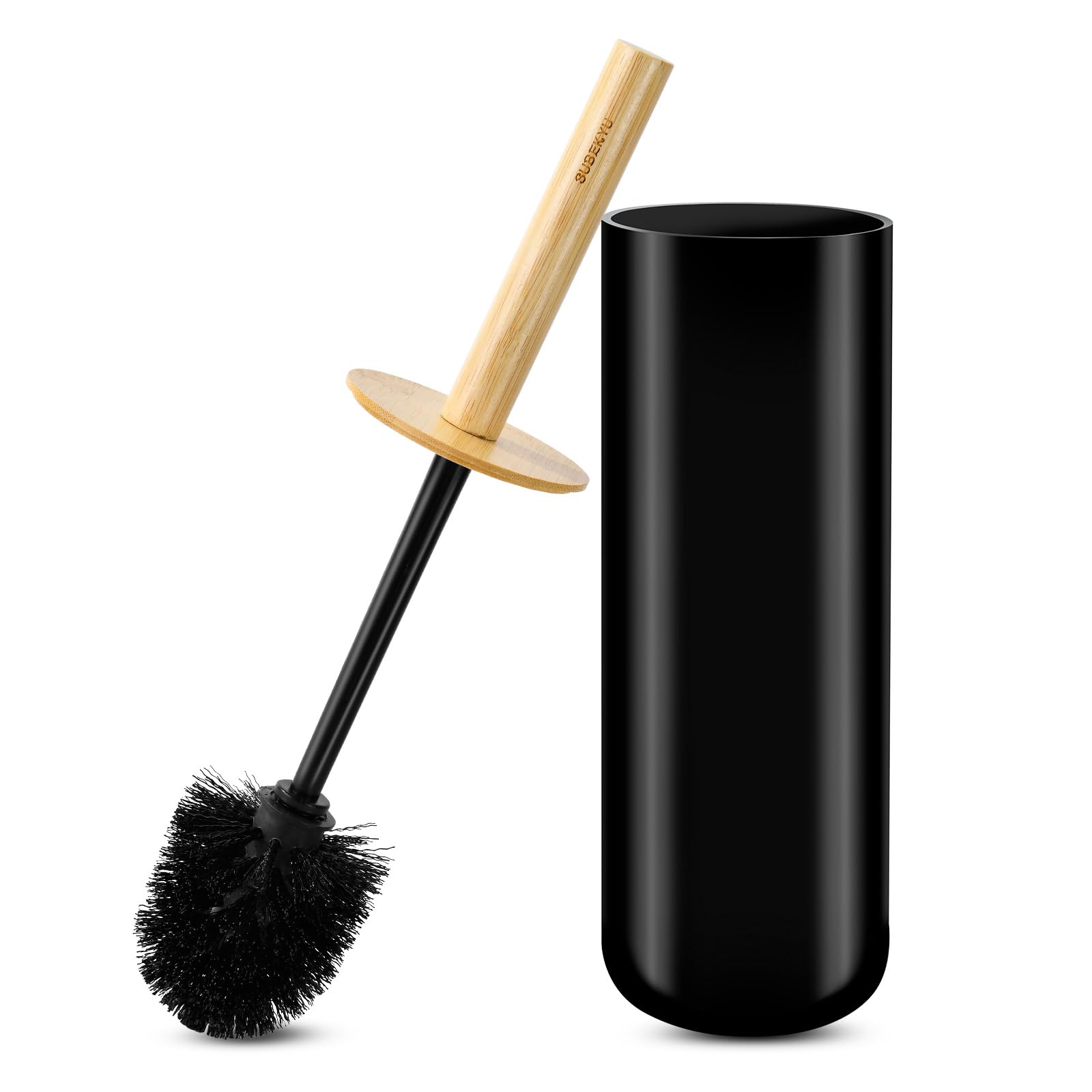 SUBEKYU Juego de escobilla de inodoro, cepillo y soporte, limpiador de inodoro para limpieza profunda (negro 2P)
