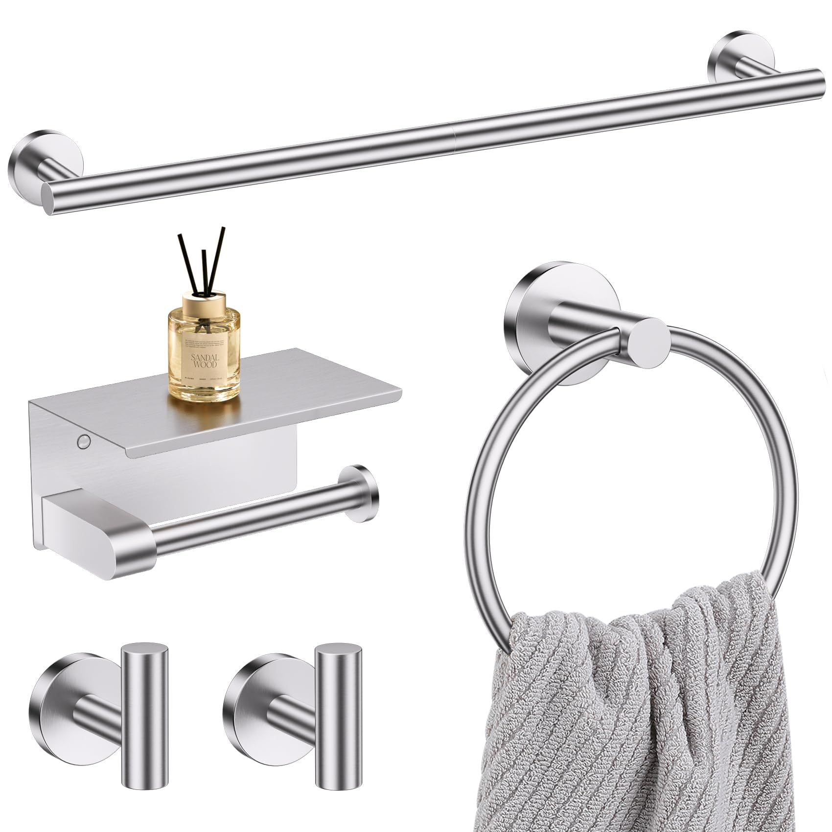 Juego de 5 toalleros de níquel cepillado para baño, juego de accesorios de baño con soporte para papel higiénico mejorado con esta