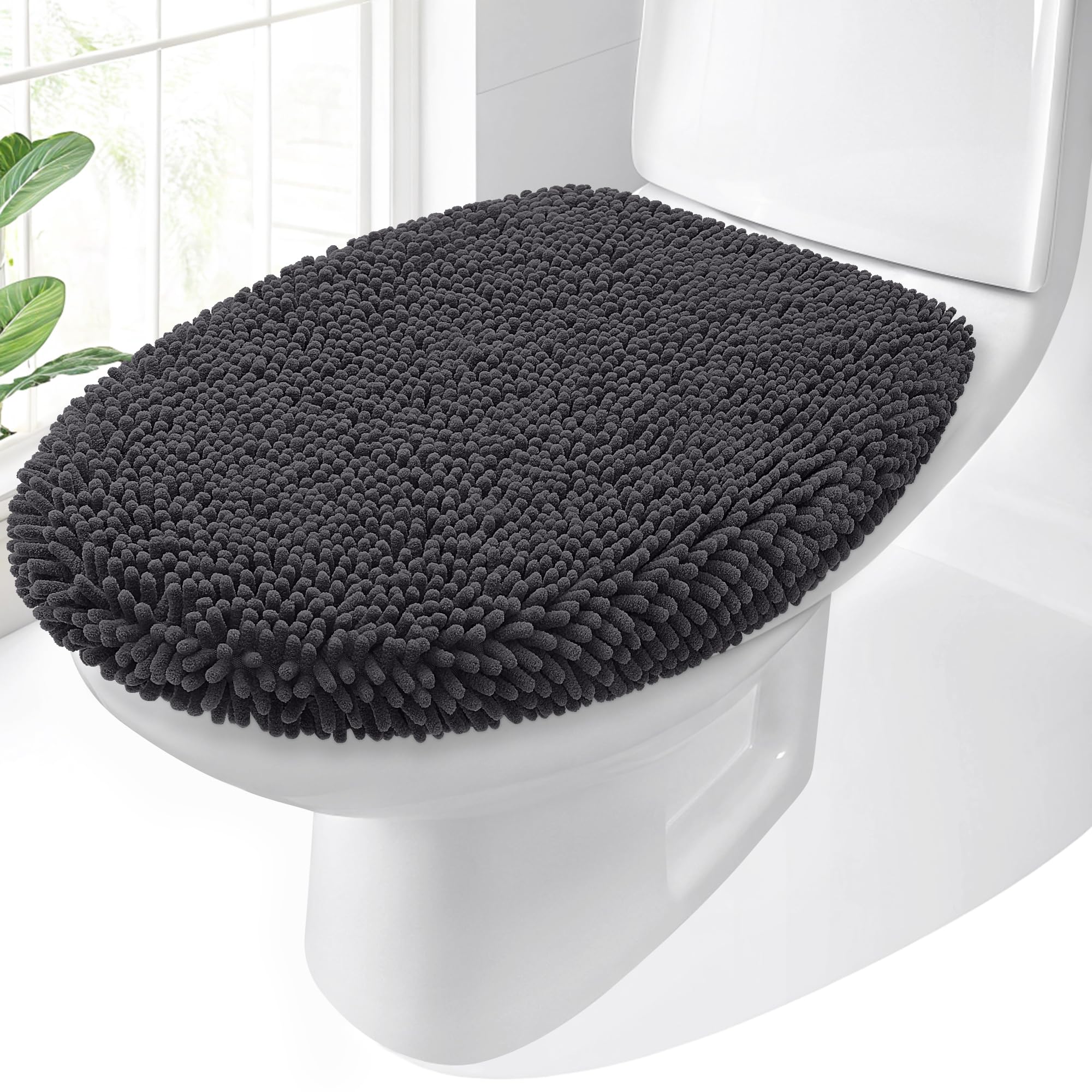 OLANLY Funda de felpilla suave para tapa de inodoro de baño, lavable a máquina, 17.5 x 15 pulgadas, parte trasera de goma que se m