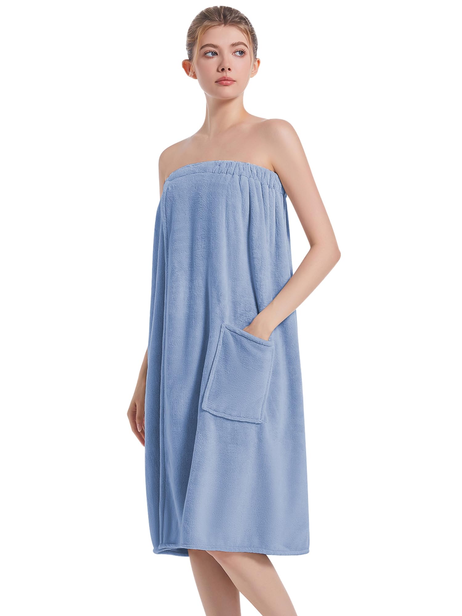 Toalla para mujer después de la ducha,Bata de baño de felpa femenina,Sauna Spa Wrap Around Toallas con bolsillos