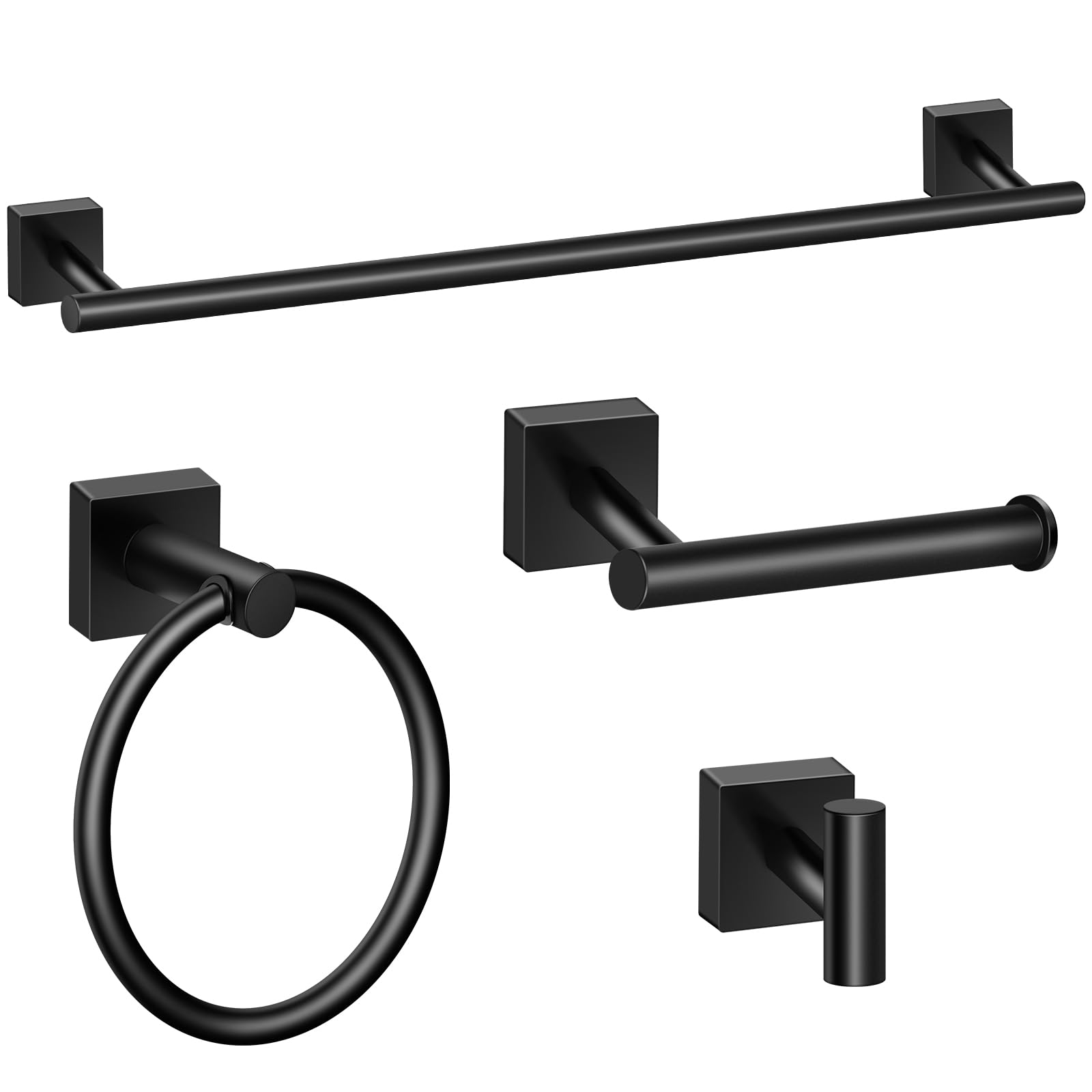 Juego de accesorios de baño de 4 piezas, juego de toallero de acero inoxidable negro mate, incluye barra de toalla de 24 pulgadas,
