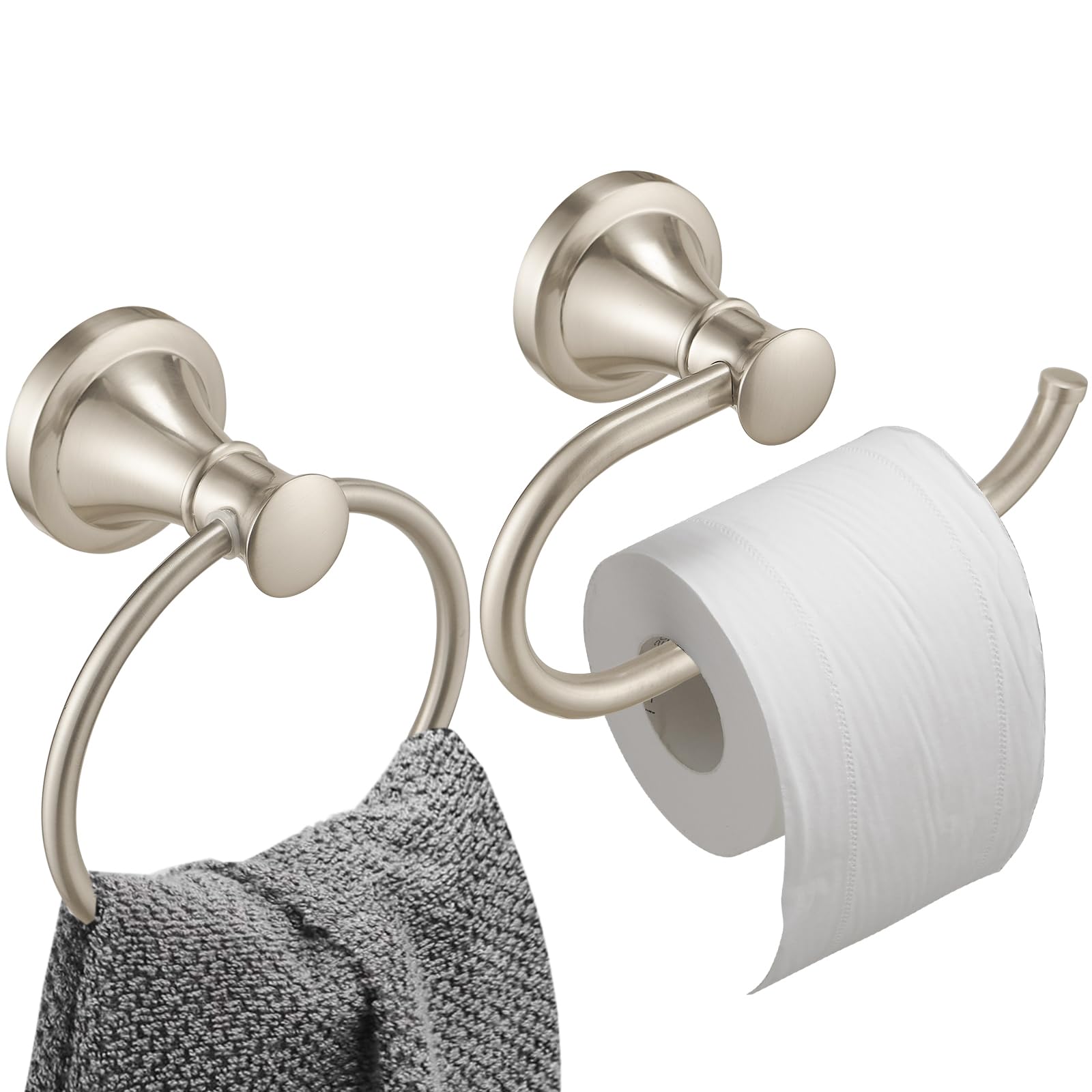 Hoimpro Juego de baño de 2 piezas de níquel cepillado, accesorios de baño montados en la pared (soporte para toallero, soporte par