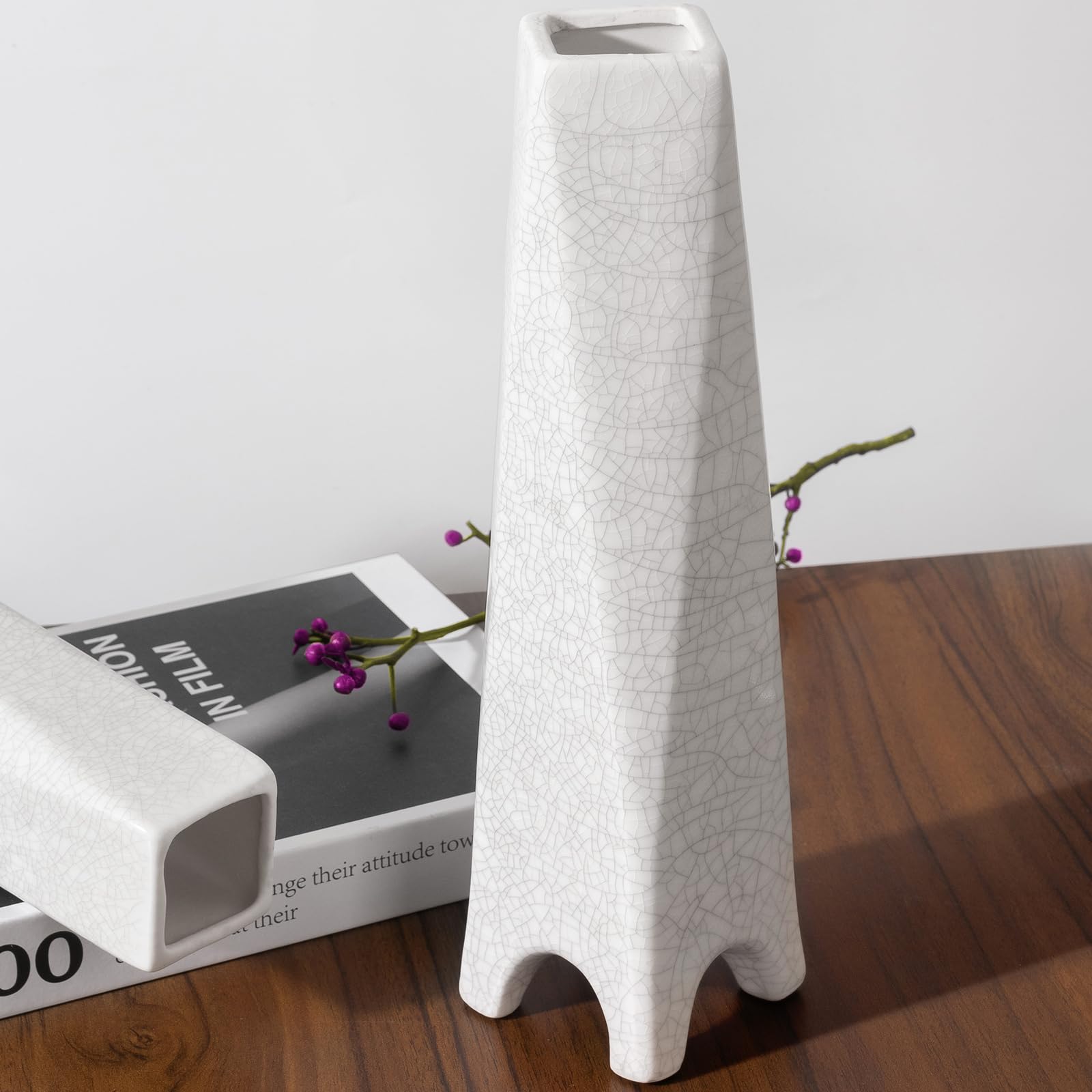 Jarrón de cerámica blanca esmaltado hecho a mano, decoración moderna de diseño geométrico giratorio, base de arco cuadrada, decora