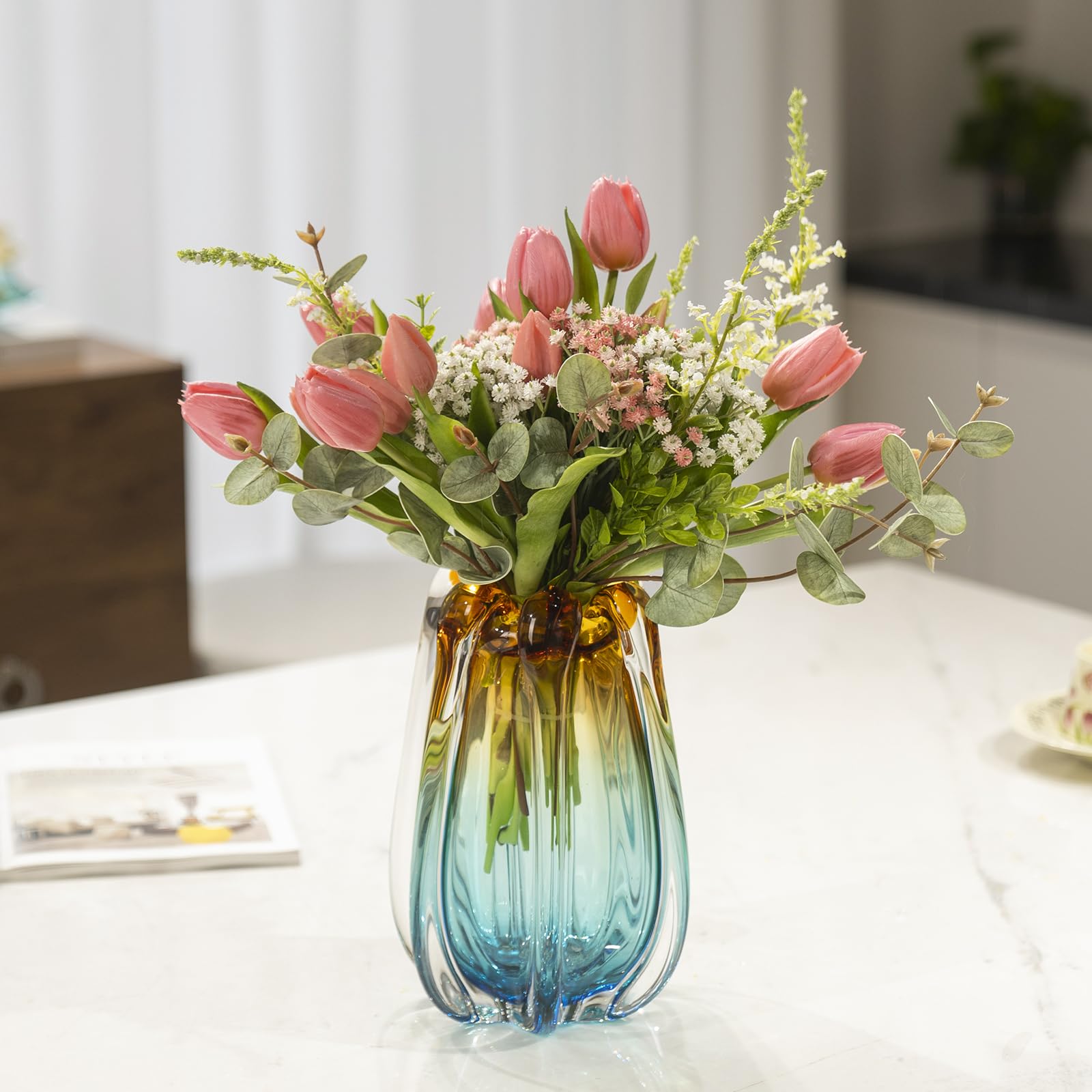 Florero de cristal de 2.4 libras 9.5 pulgadas, estilo bohemio, para centros de mesa, boda, decoración del hogar florero de cristal