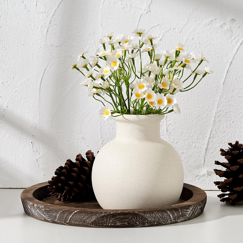 hjn Jarrón blanco para flores, jarrón de cerámica para decoración del hogar, jarrón rústico francés para cocina/mesa/sala de estar